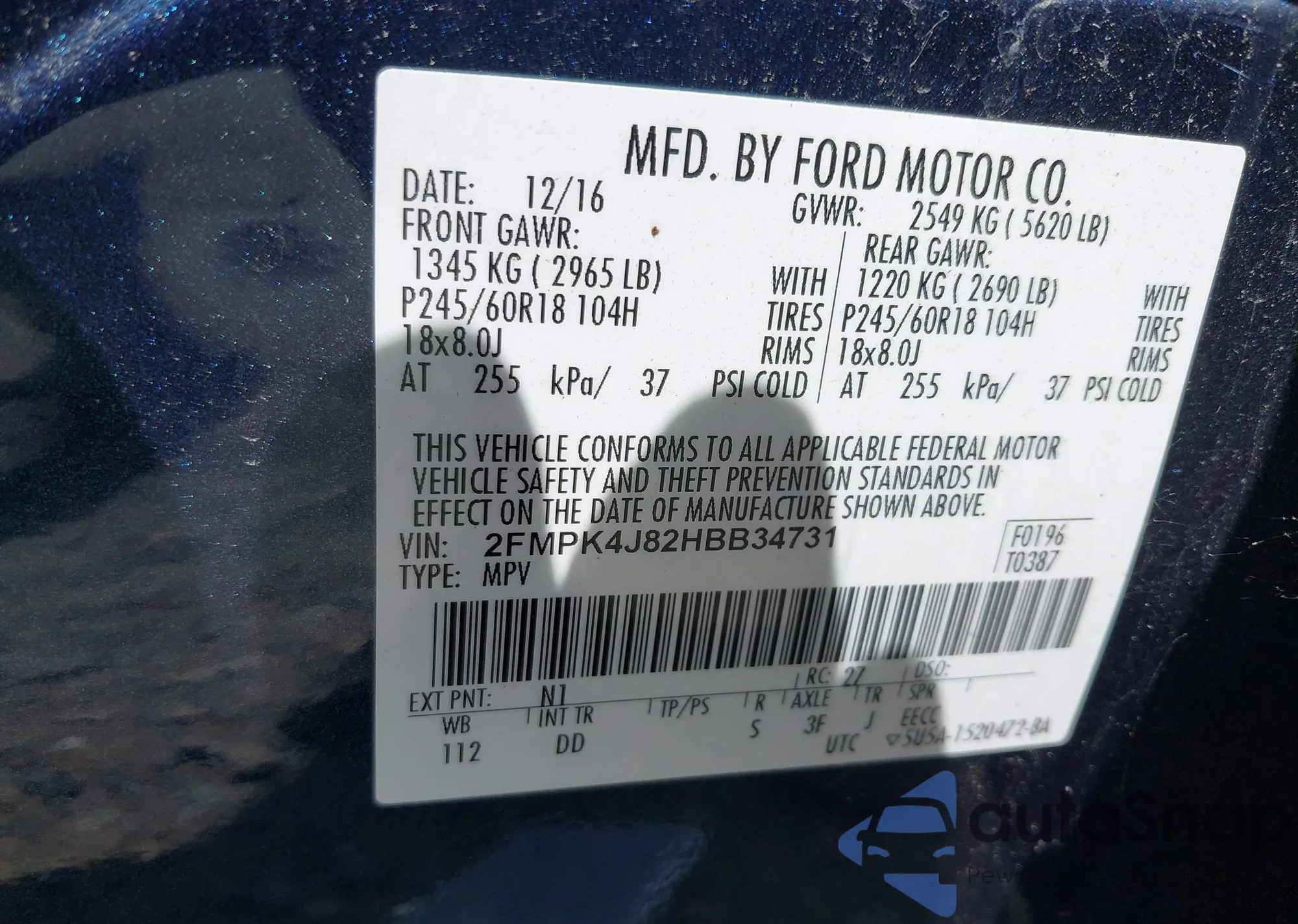 • VIN 1FMCU9DG2AKA15307