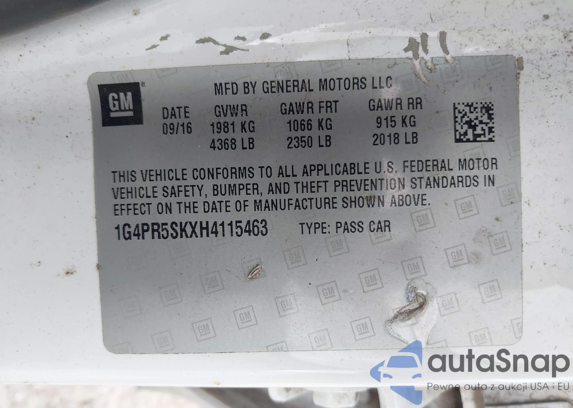 LOT: 42743054 VIN: 1G4PR5SKXH4115463