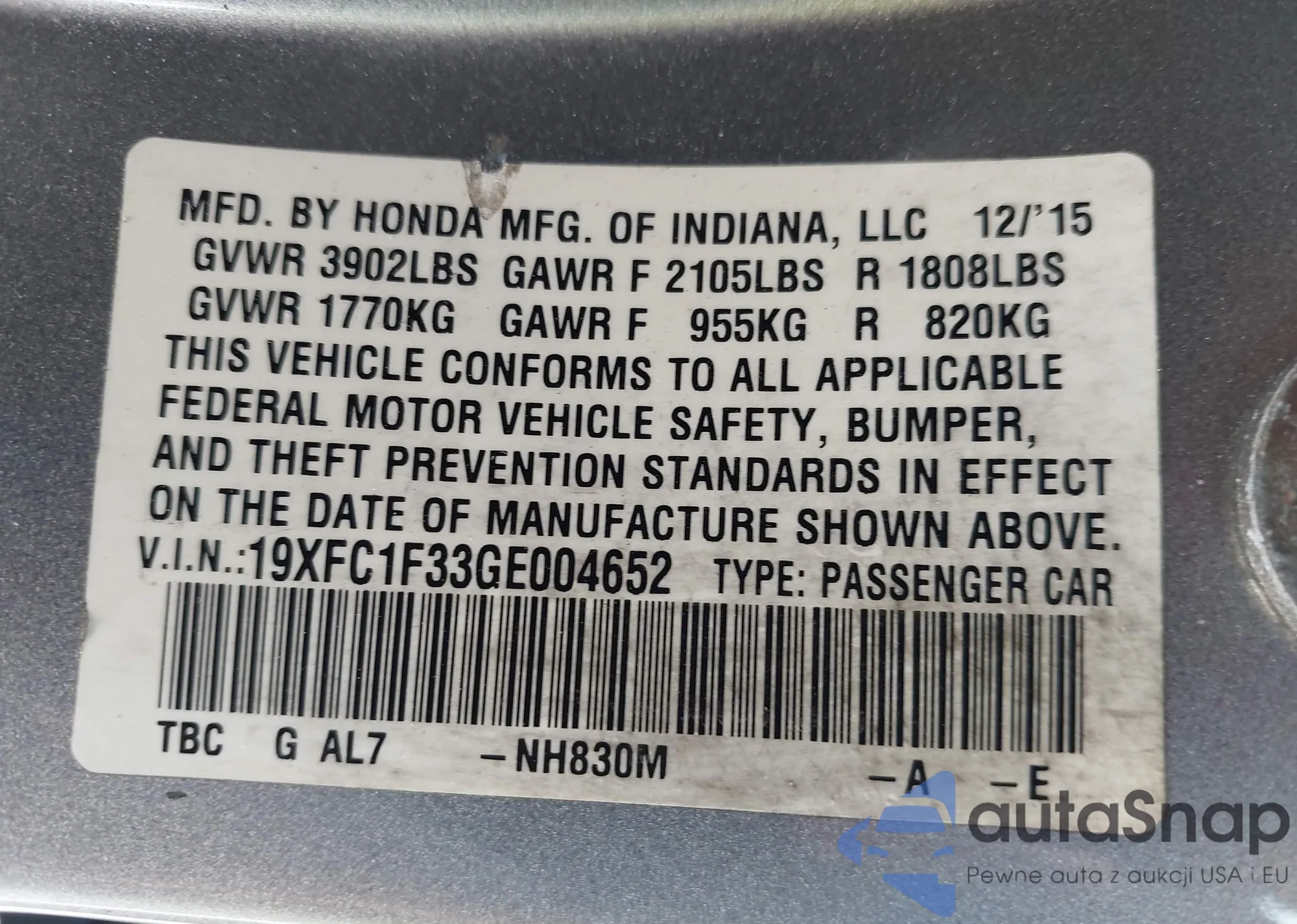 • VIN 19XFC1F33GE004652