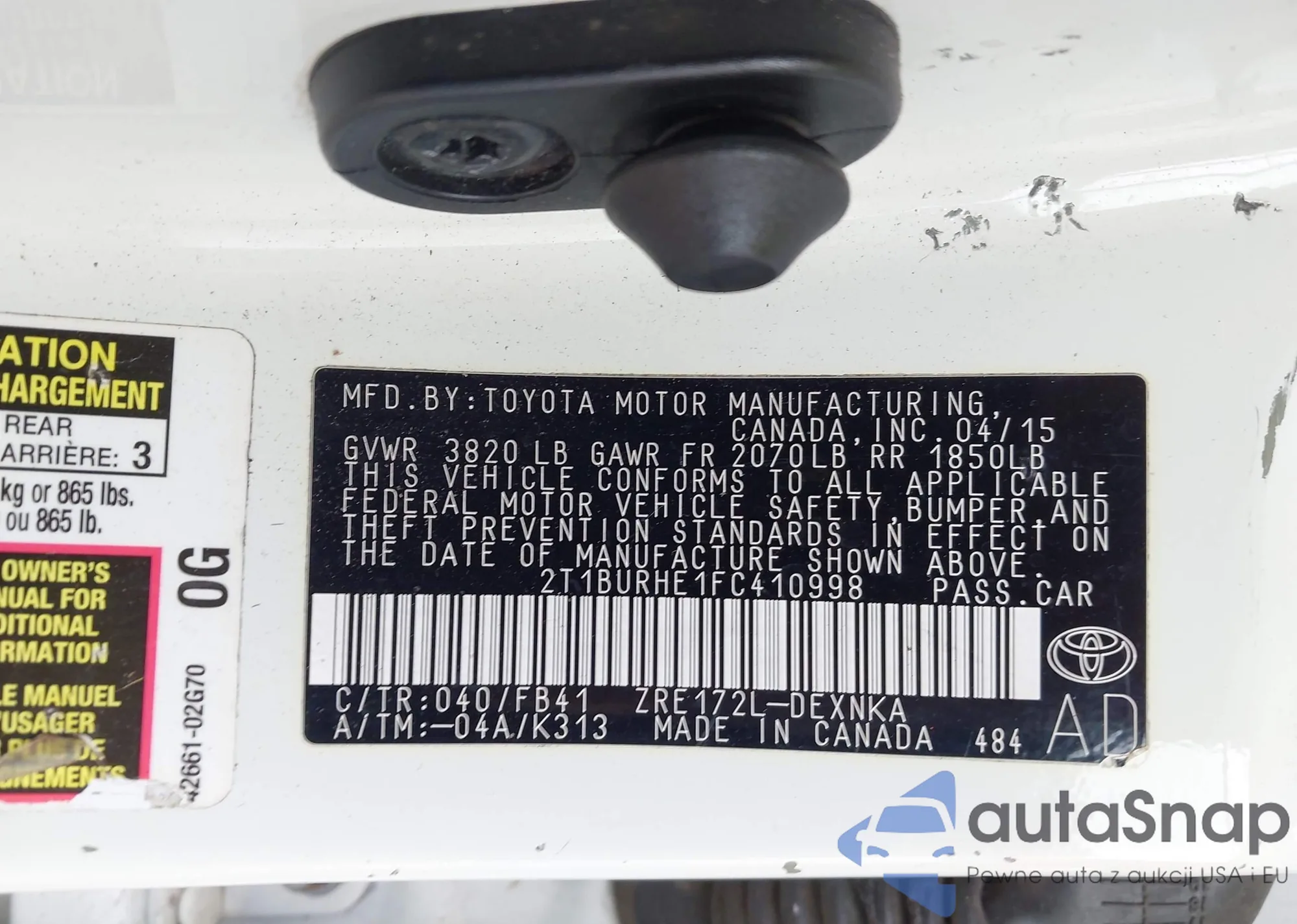 • VIN 2T1BURHE1FC410998