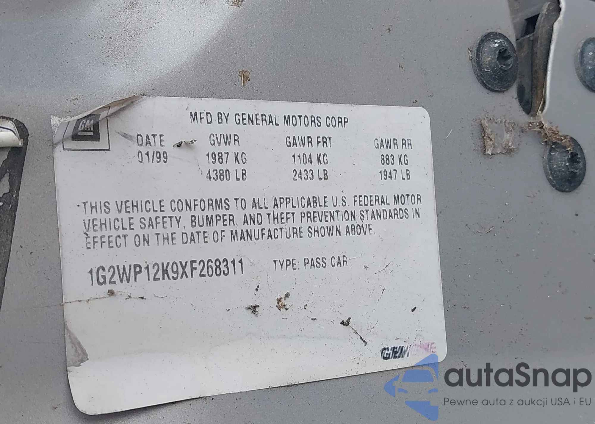 • VIN 1G2WP12K9XF268311