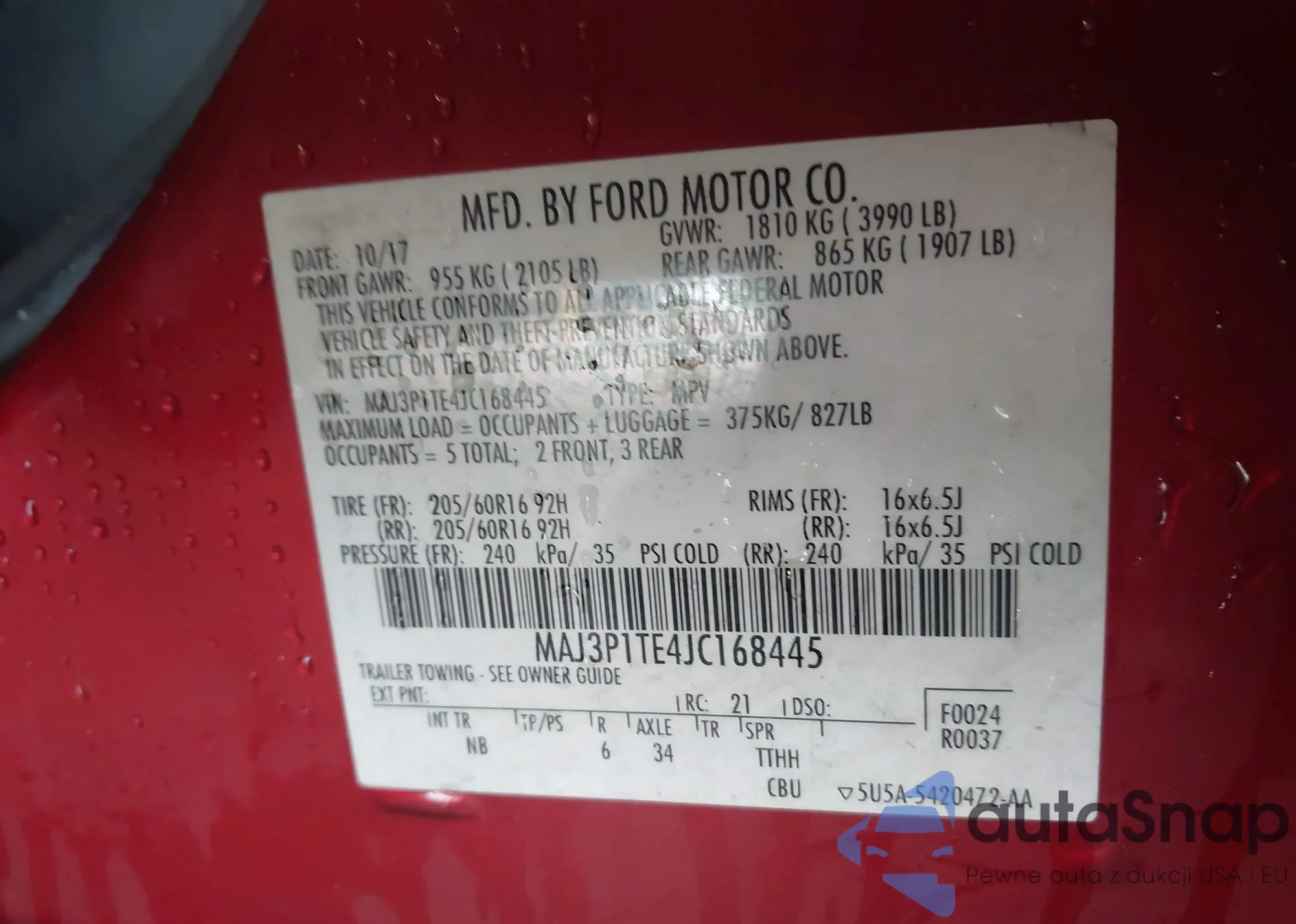 LOT: 42439641 VIN: MAJ3P1TE4JC168445