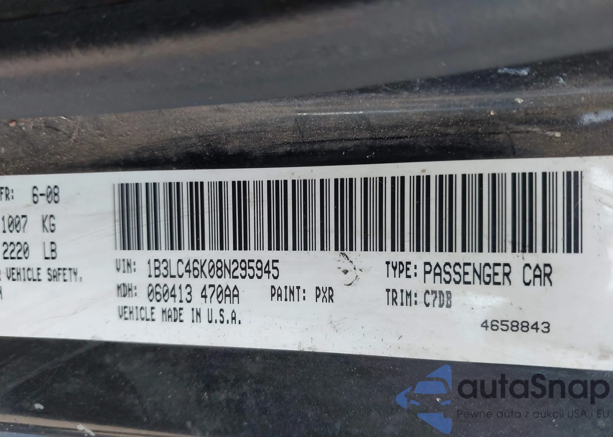 • VIN 1B3LC46K08N295945