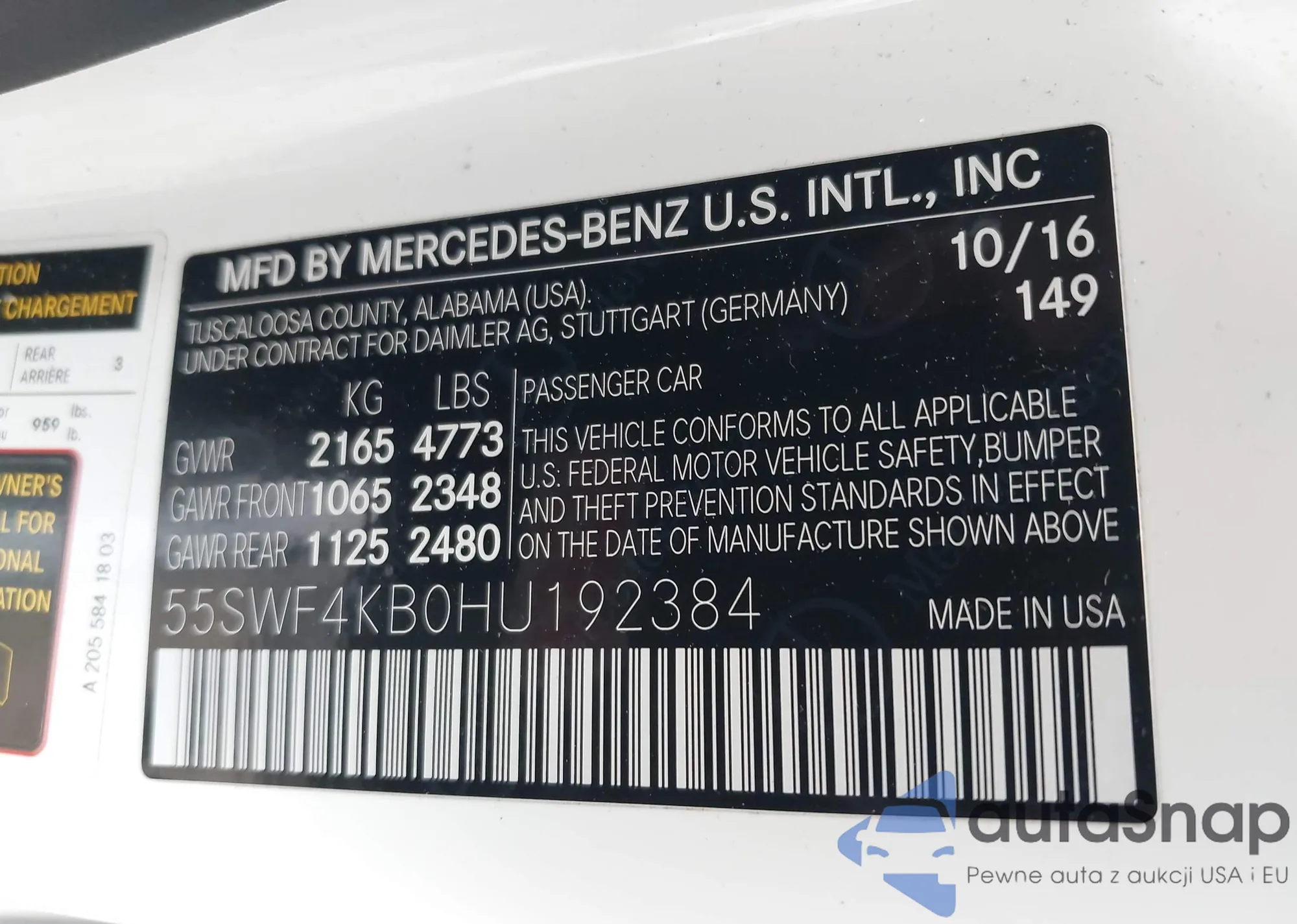 • VIN 55SWF4KB0HU192384