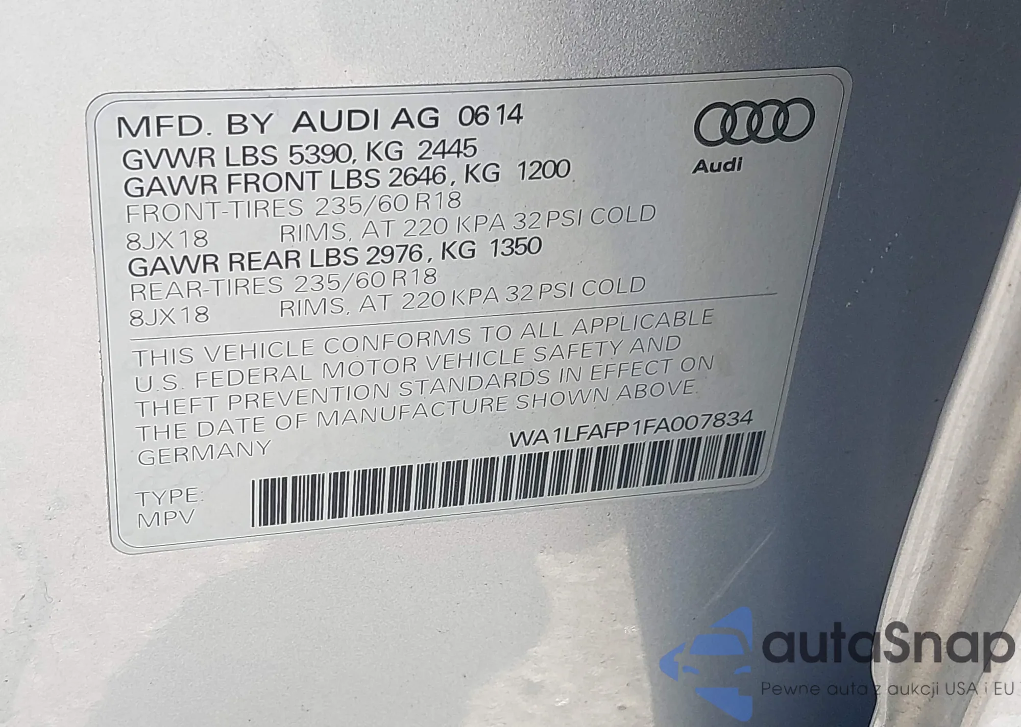 • VIN WA1LFAFP1FA007834
