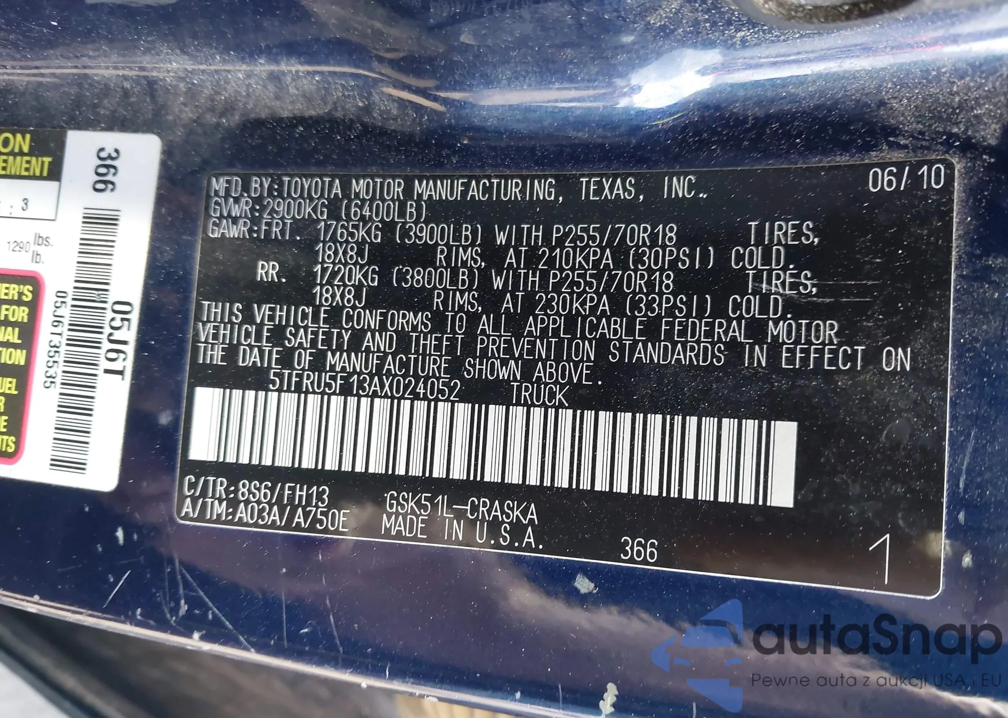 • VIN 5TFRU5F13AX024052