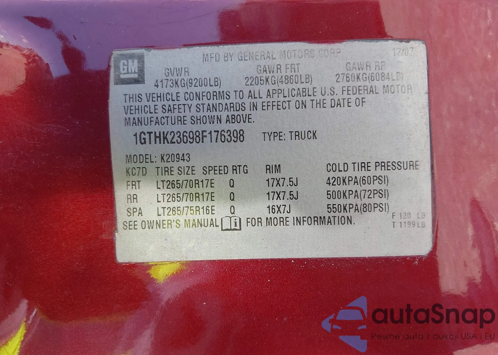 • VIN 1GTHK23698F176398