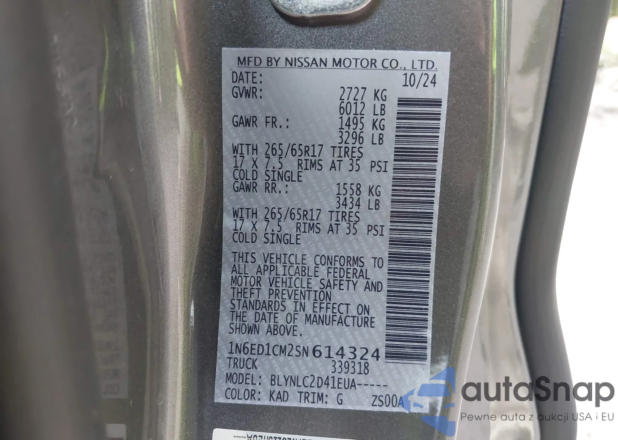 • VIN 1N6ED1CM2SN614324