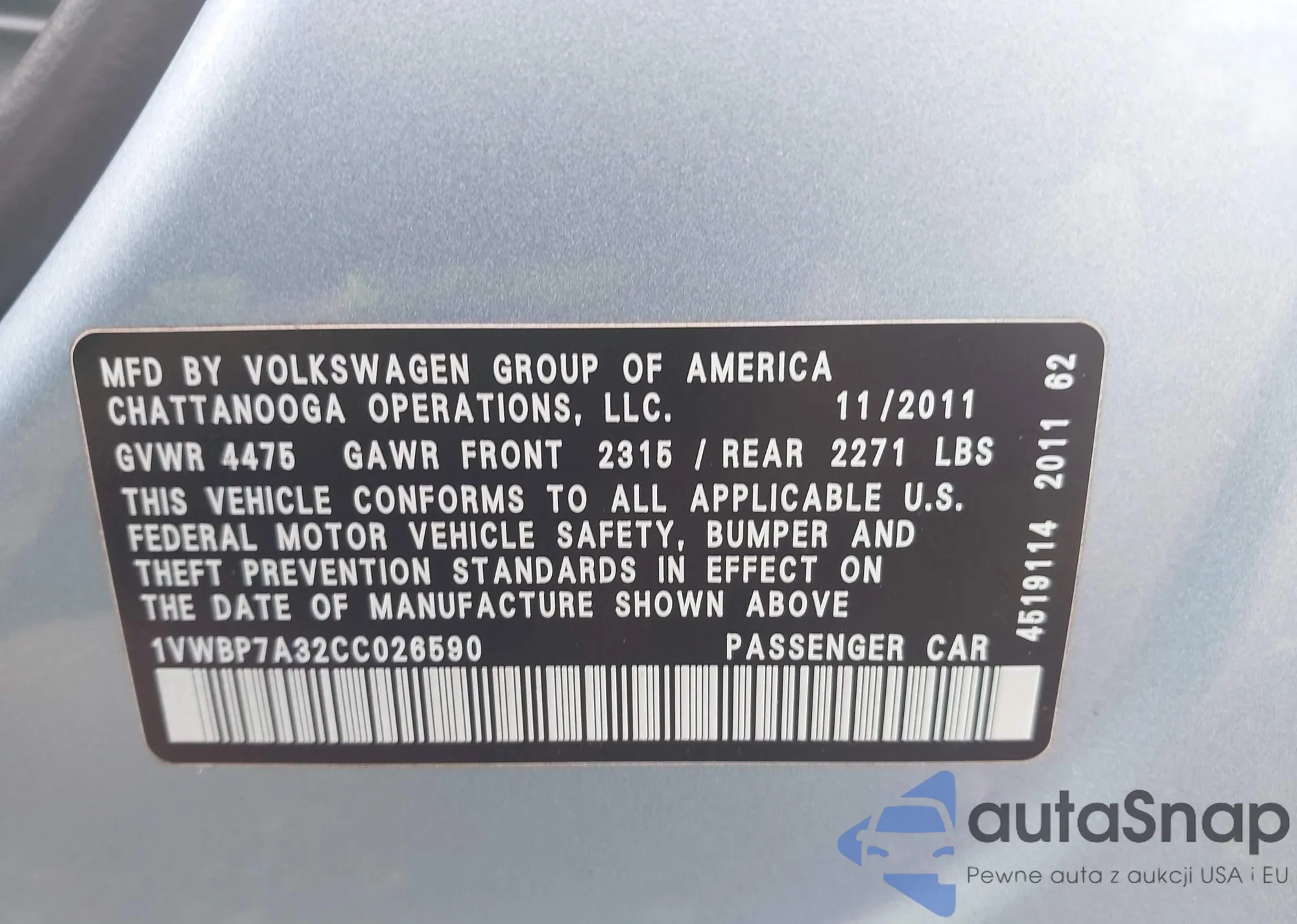 • VIN 1VWBP7A32CC026590