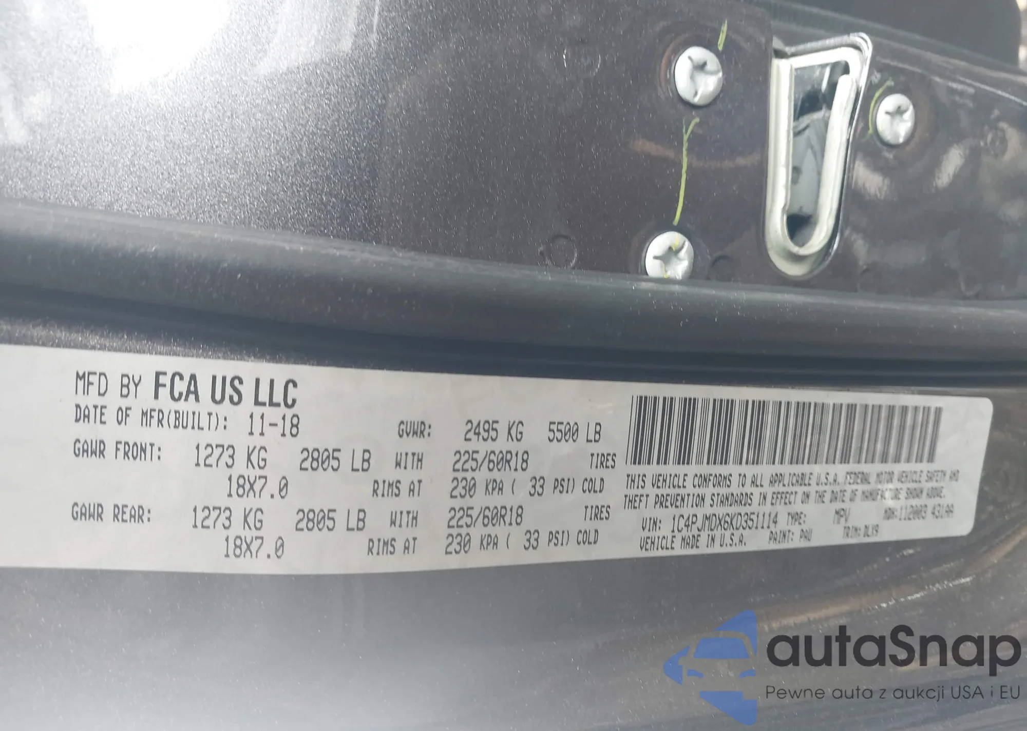 • VIN 1C4PJMDX6KD351114