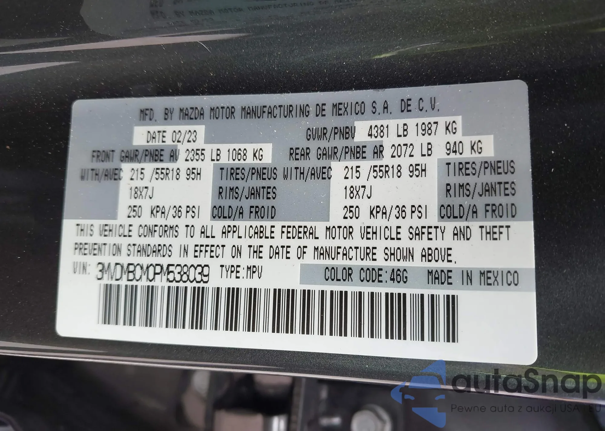 • VIN 3MVDMBCM0PM538039