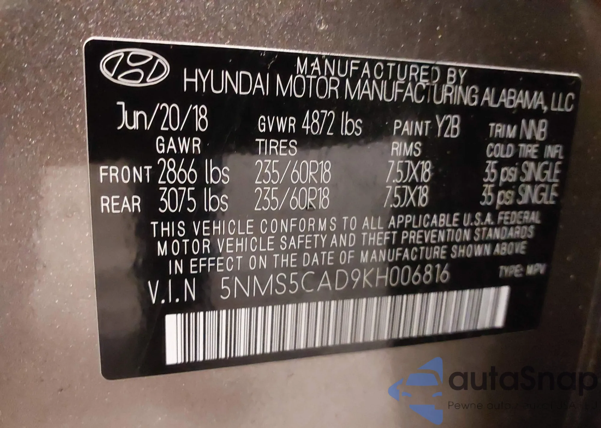 • VIN 5NMS5CAD9KH006816