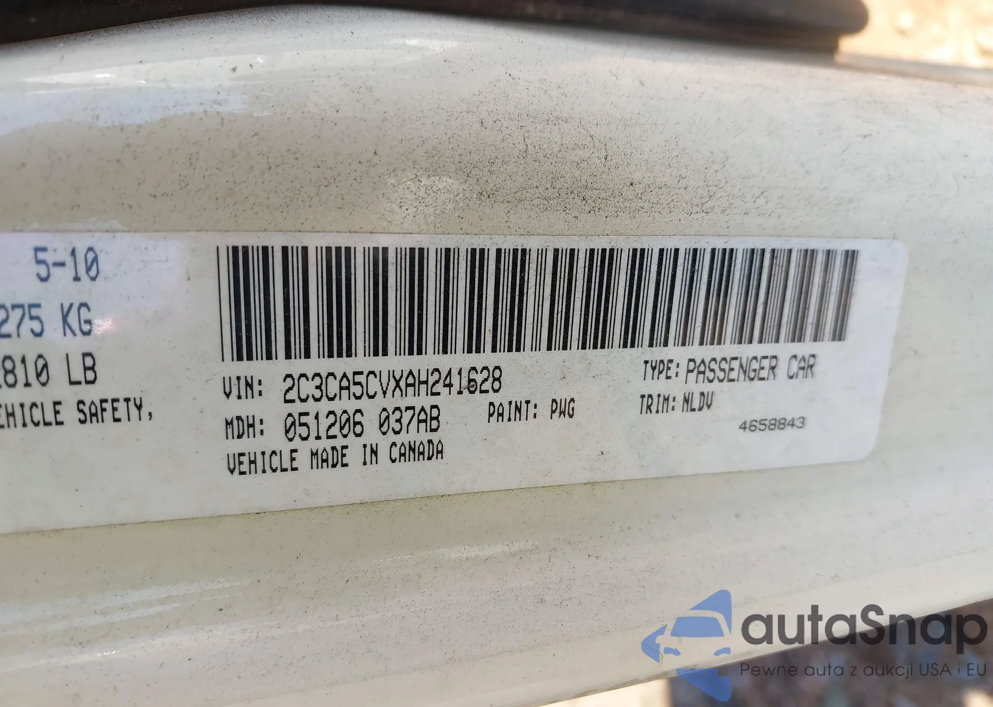 • VIN 2C3CA5CVXAH241628