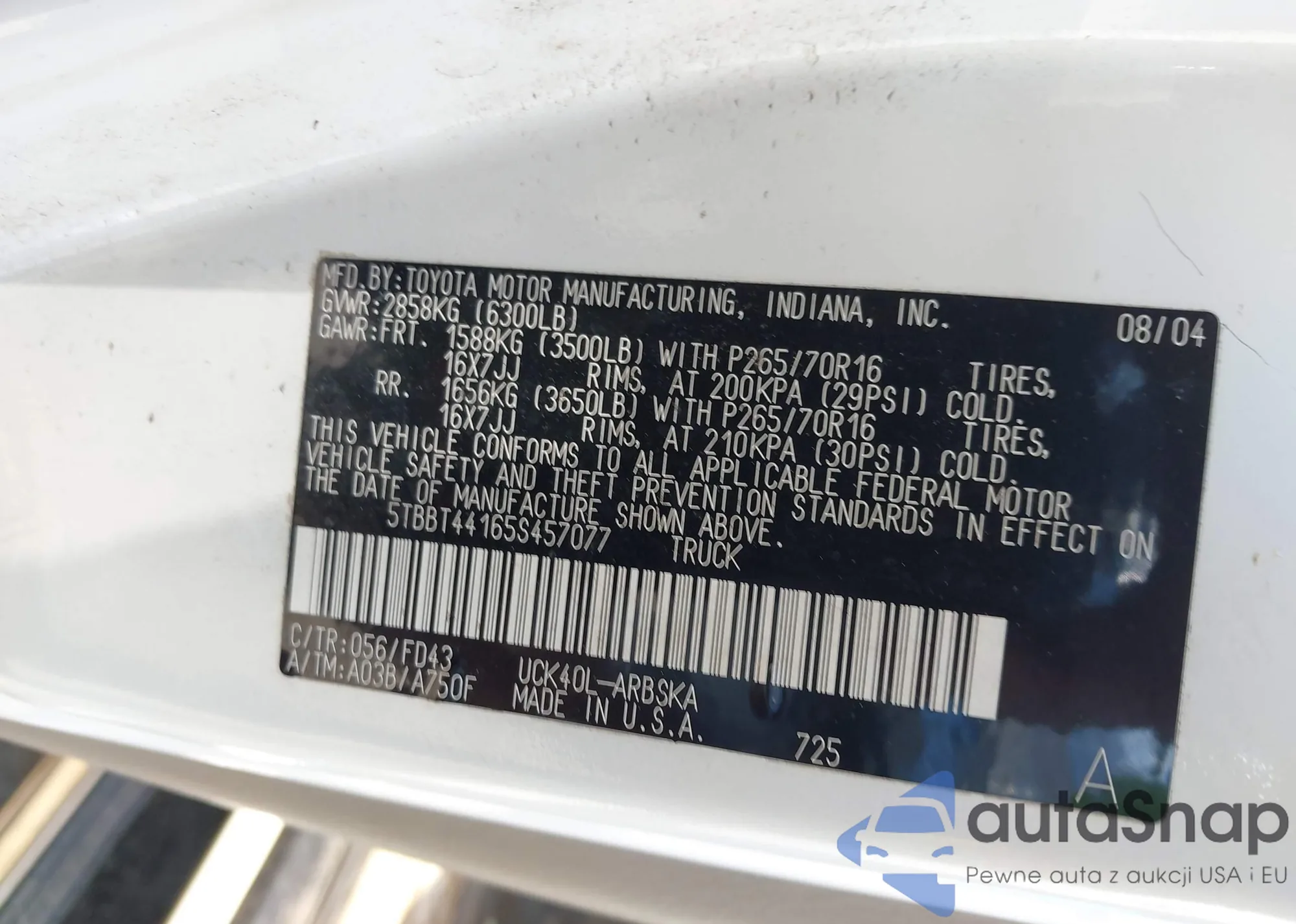 LOT: 42897304 VIN: WBXPC93488WJ23808