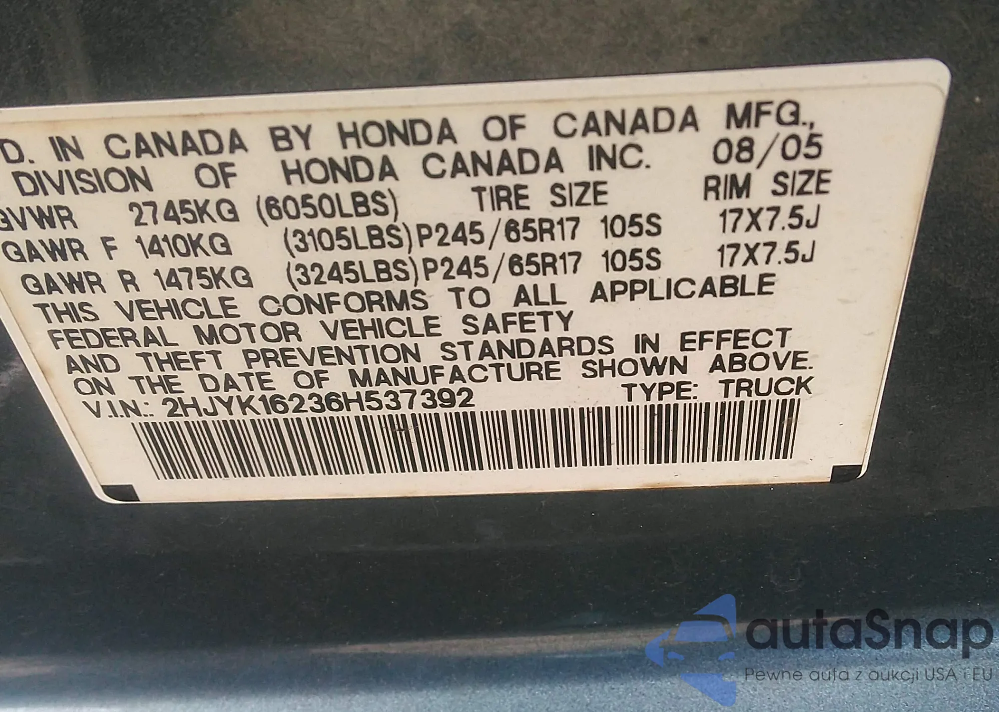 • VIN 2HJYK16236H537392