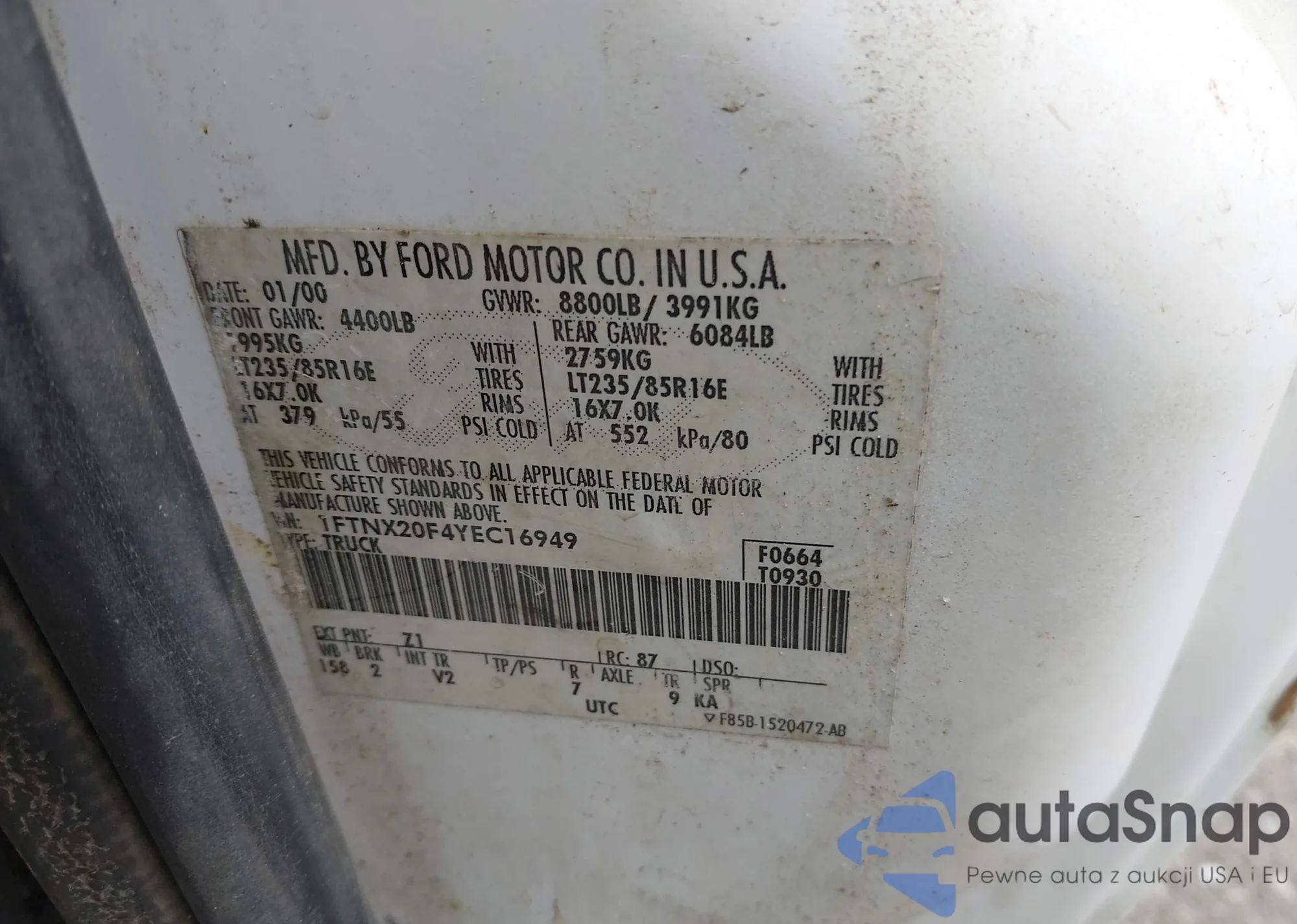 LOT: 42901511 VIN: 1FMCU03739KA81065