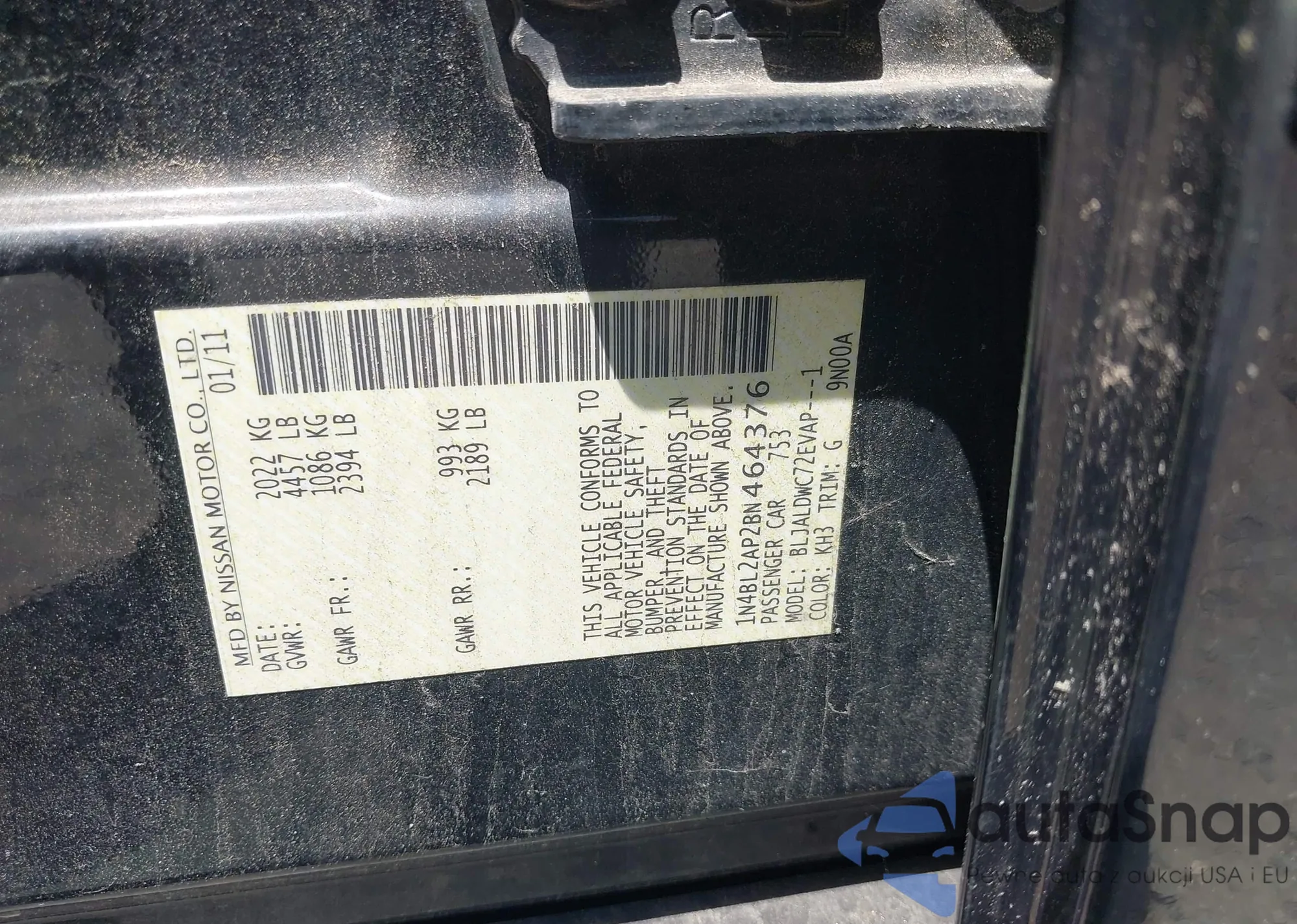LOT: 42701390 VIN: 1N4BL2AP2BN464376