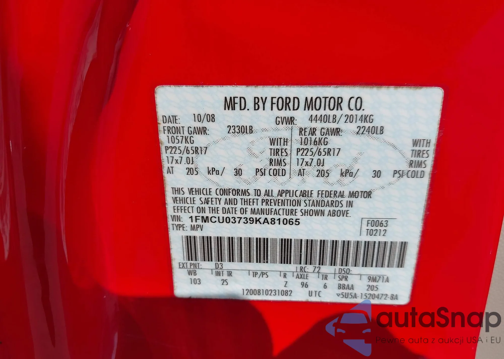 • VIN 1FMCU03739KA81065