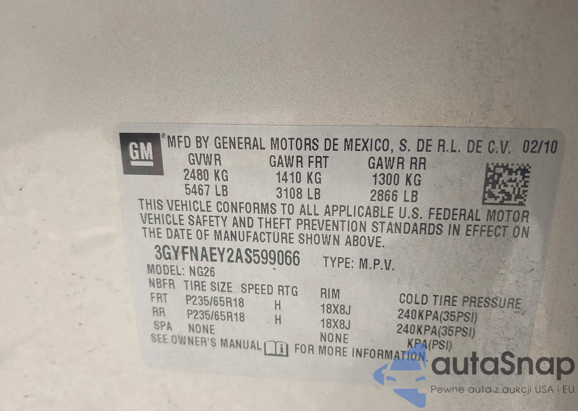 • VIN 3GNAXVEV3JL390668