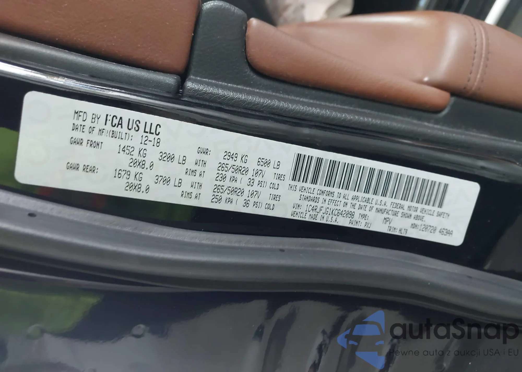 • VIN 1C4RJFJG1KC642098