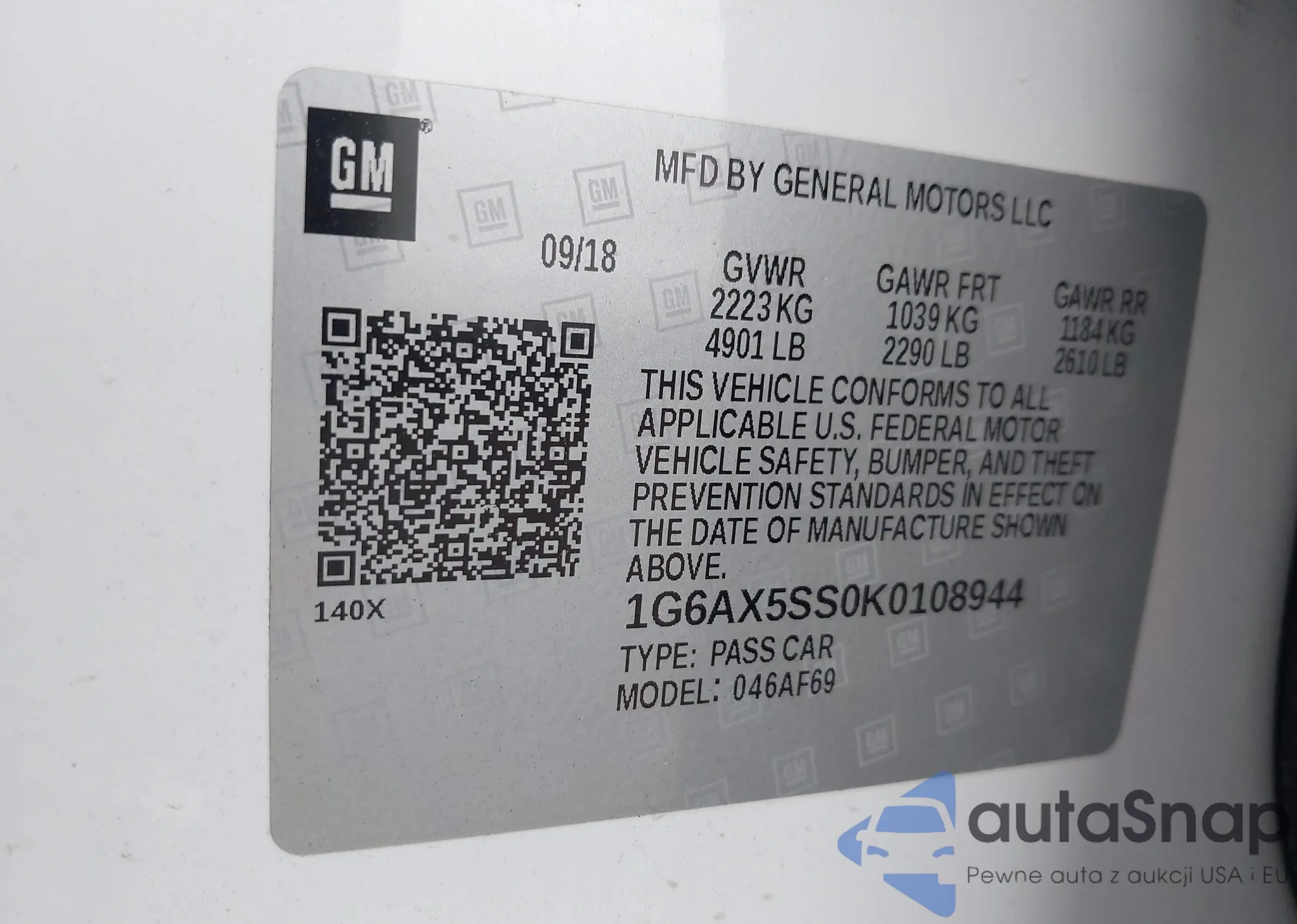 • VIN 1G6AX5SS0K0108944