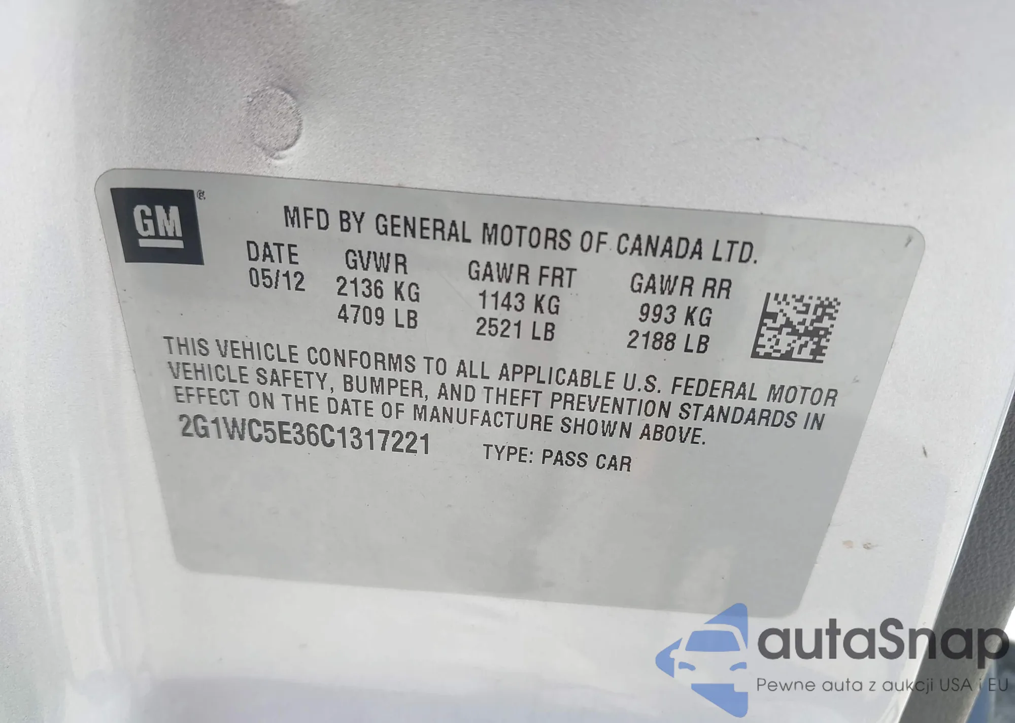 • VIN 2G1WC5E36C1317221