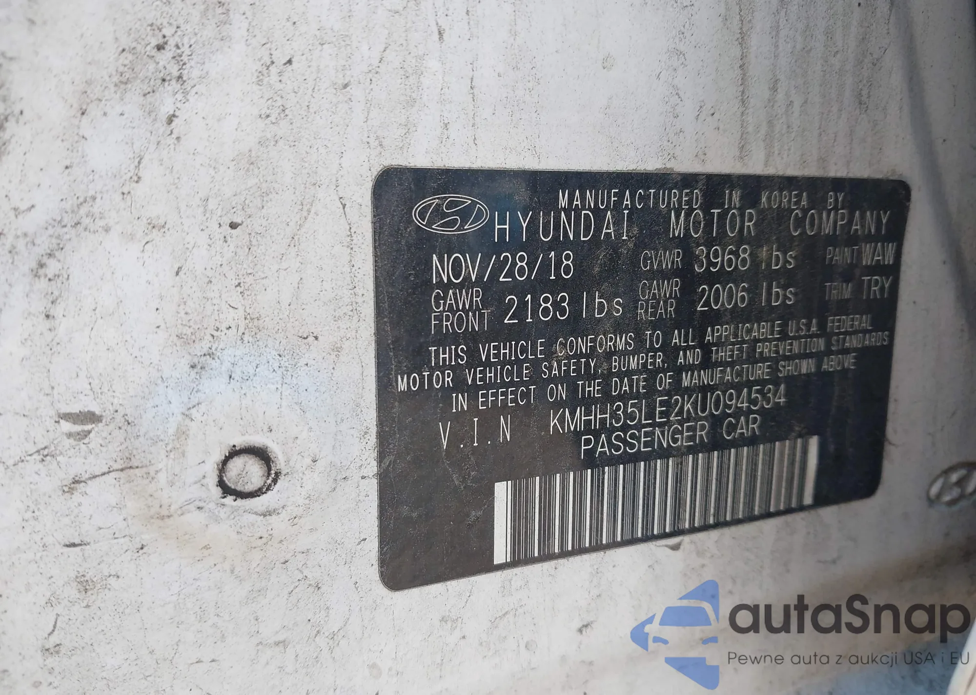 • VIN KMHH35LE2KU094534