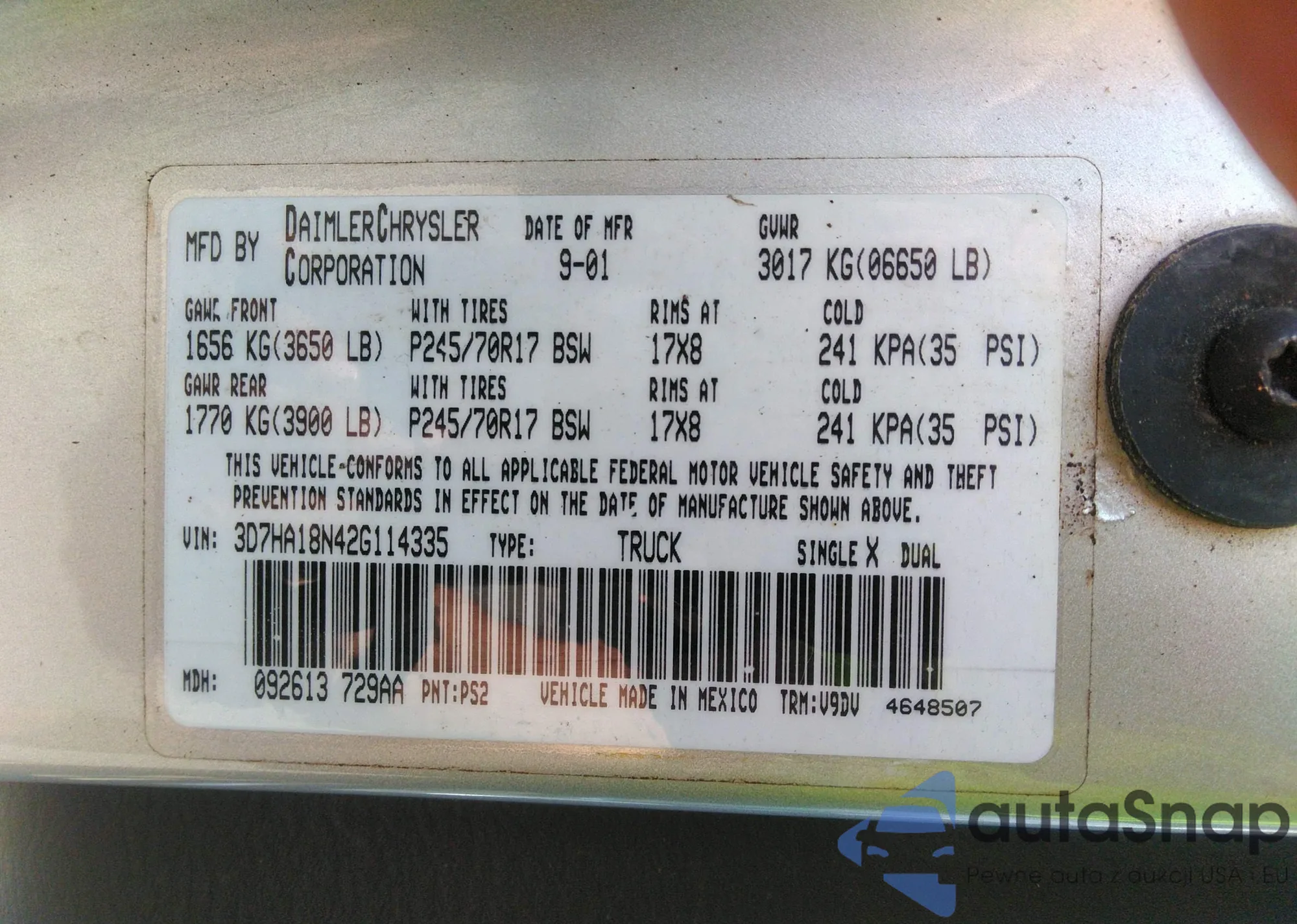 • VIN 3D7HA18N42G114335