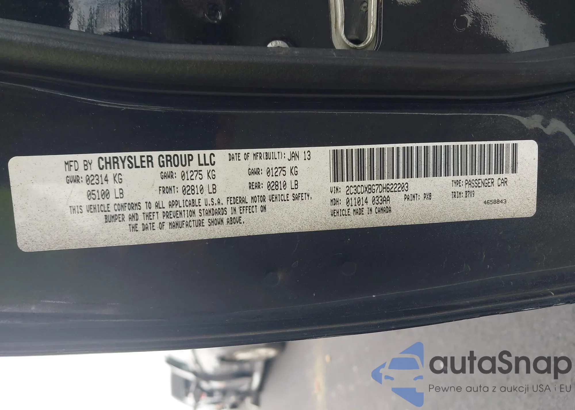 • VIN 2C3CDXBG7DH622203