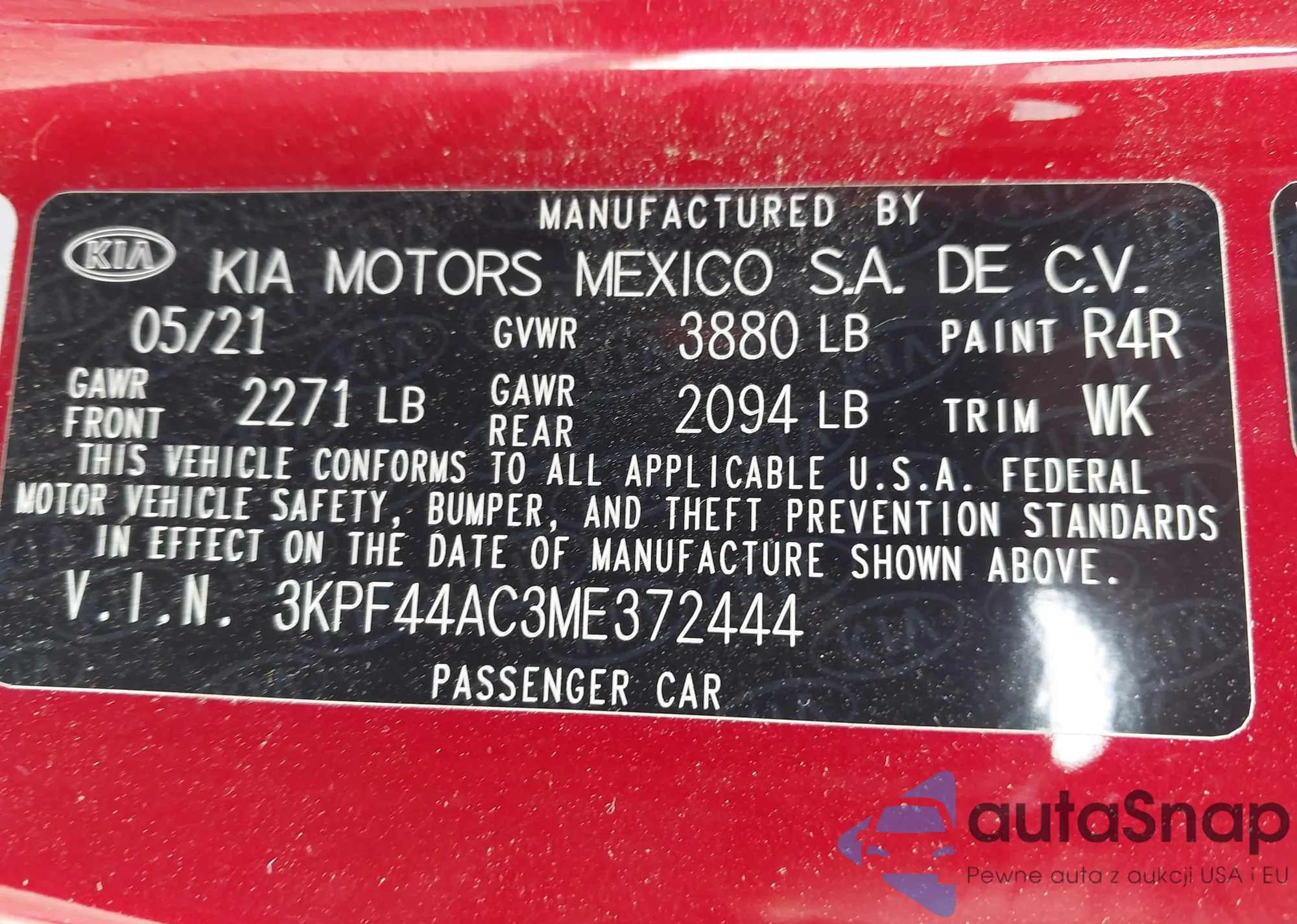 • VIN 3KPF44AC3ME372444