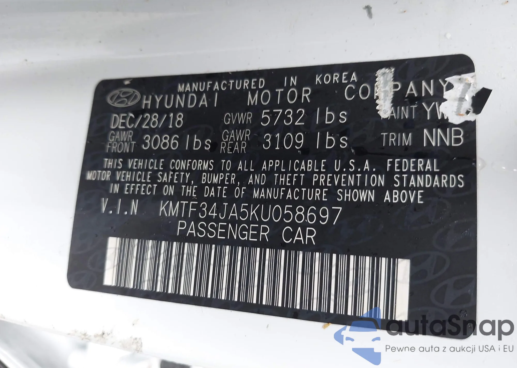 LOT: 42341267 VIN: KM8J33A24HU364225
