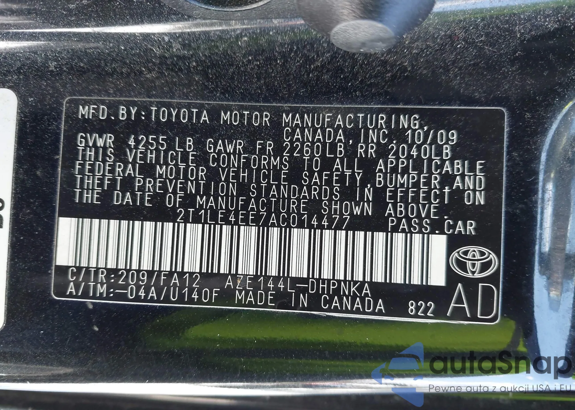 • VIN 2T1LE4EE7AC014477