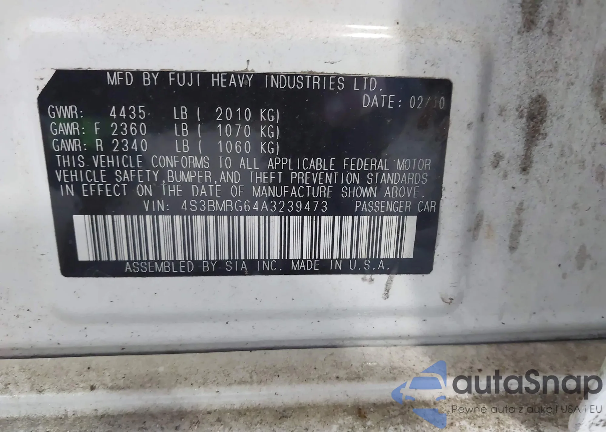 • VIN 4S3BMBG64A3239473