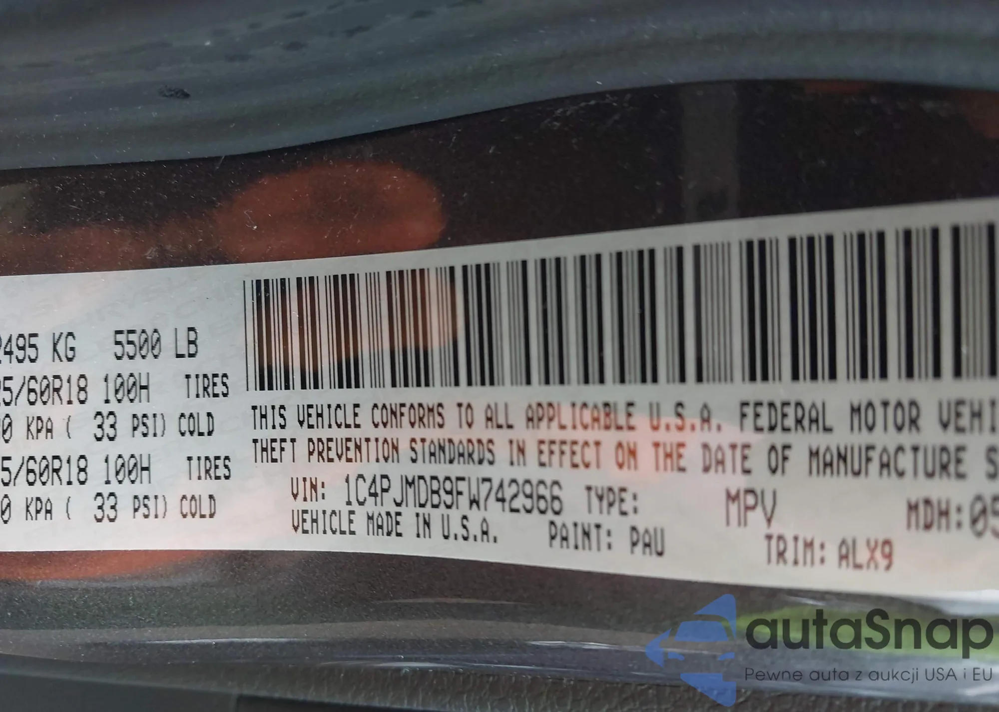 LOT: 42725028 VIN: 1C4PJMDB9FW742966