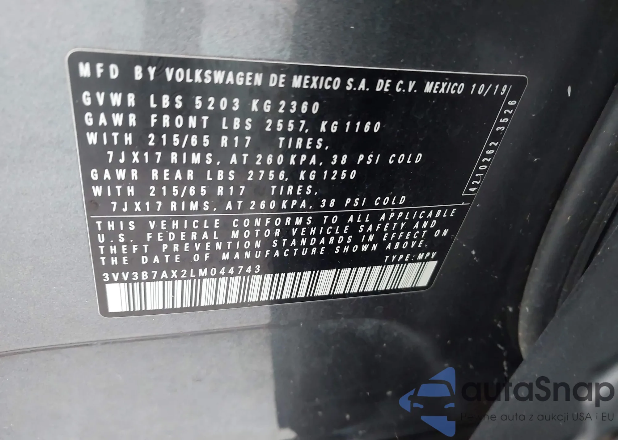 • Lot number 42725028