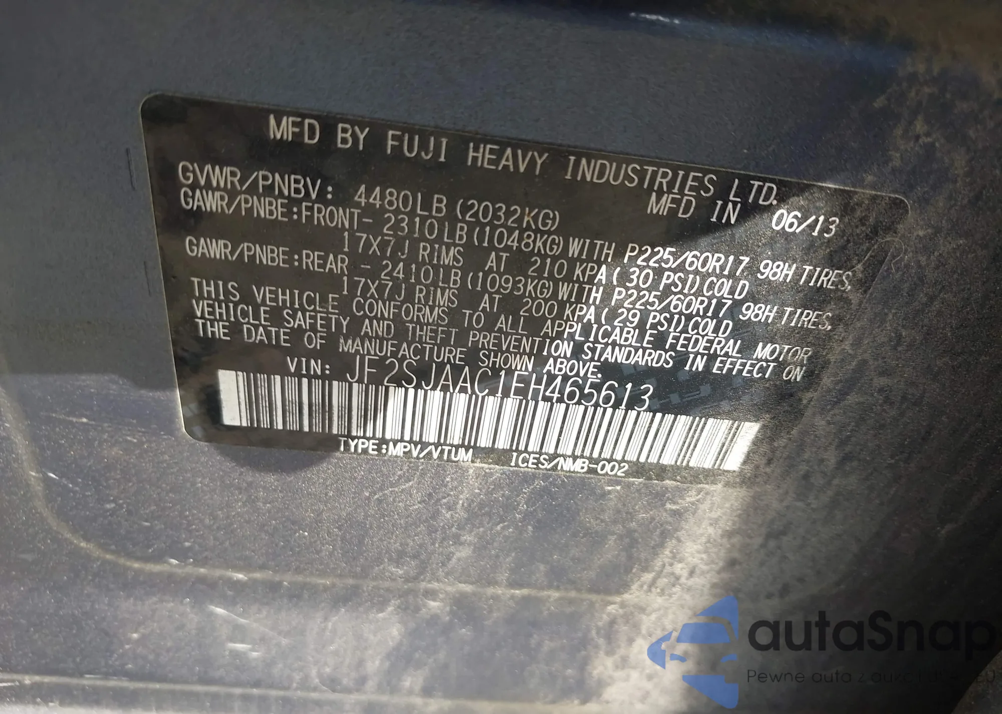 LOT: 42867242 VIN: JF2SJAAC1EH465613