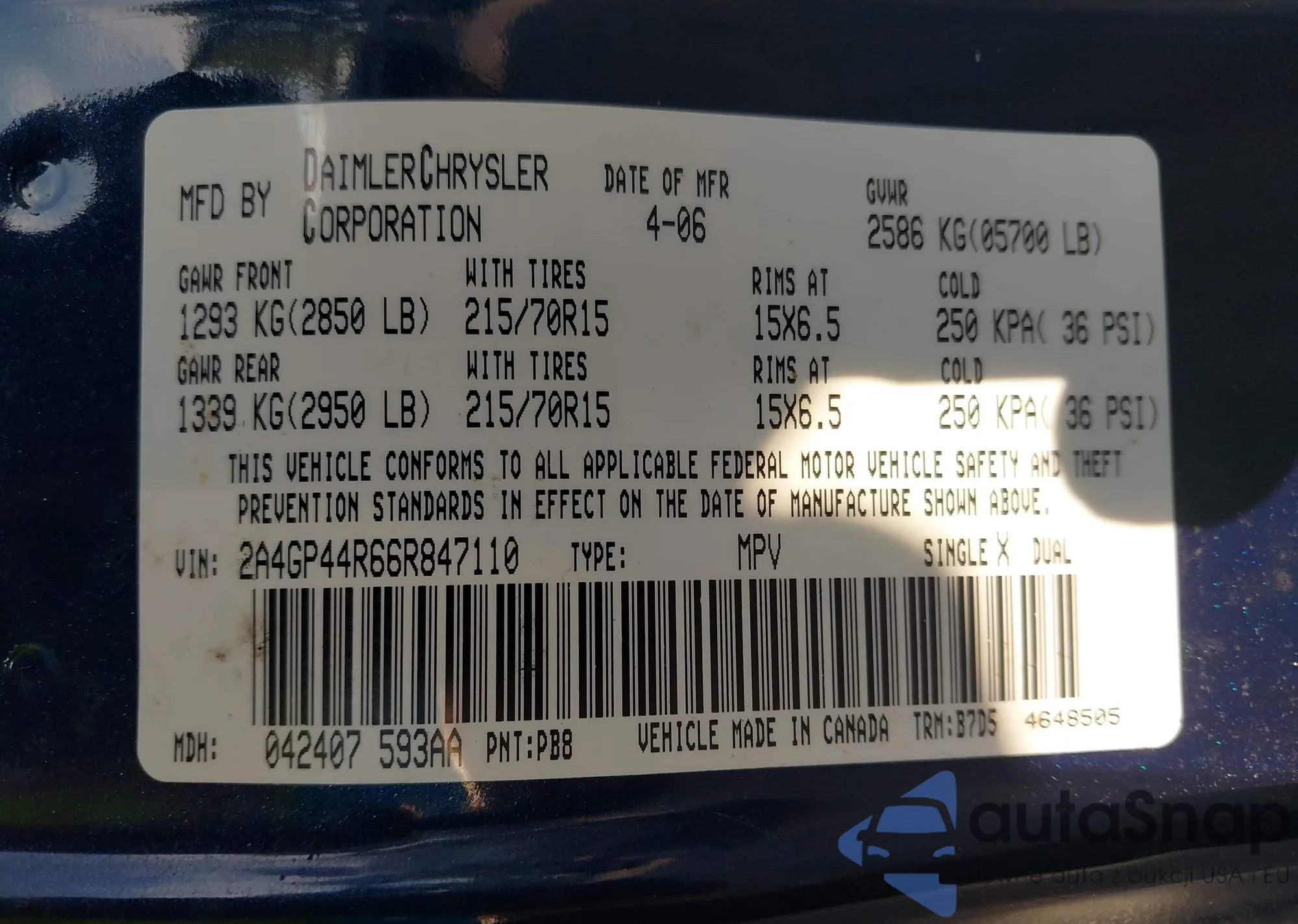 LOT: 42873153 VIN: 5TDZA23C86S457697