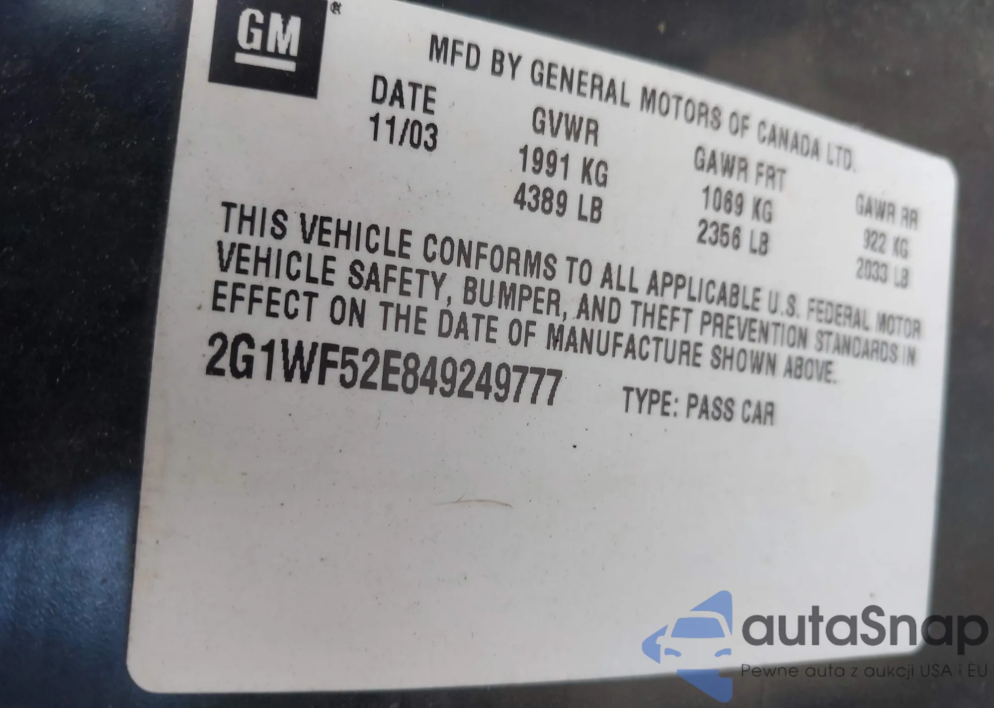 • VIN 2G1WF52E849249777
