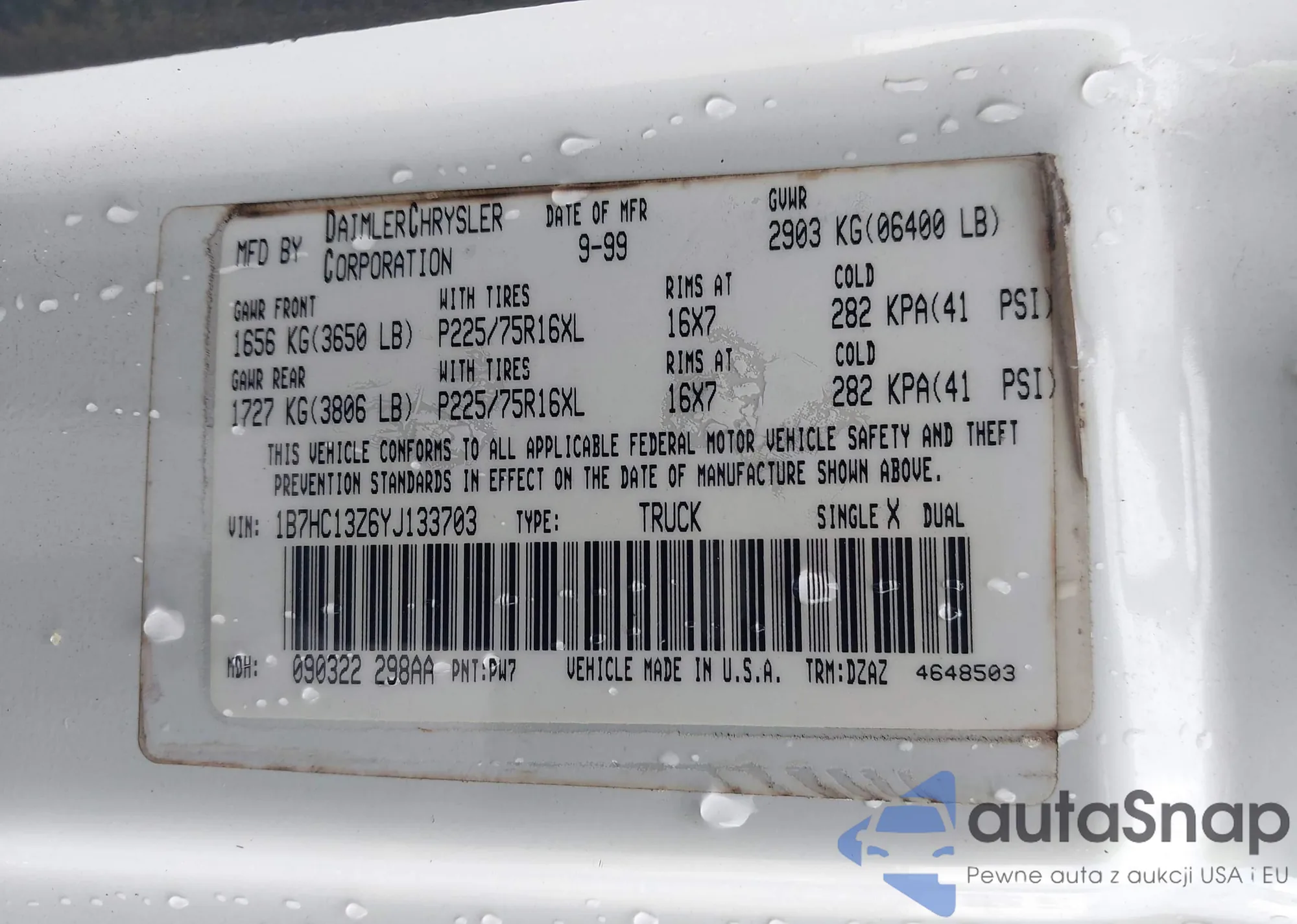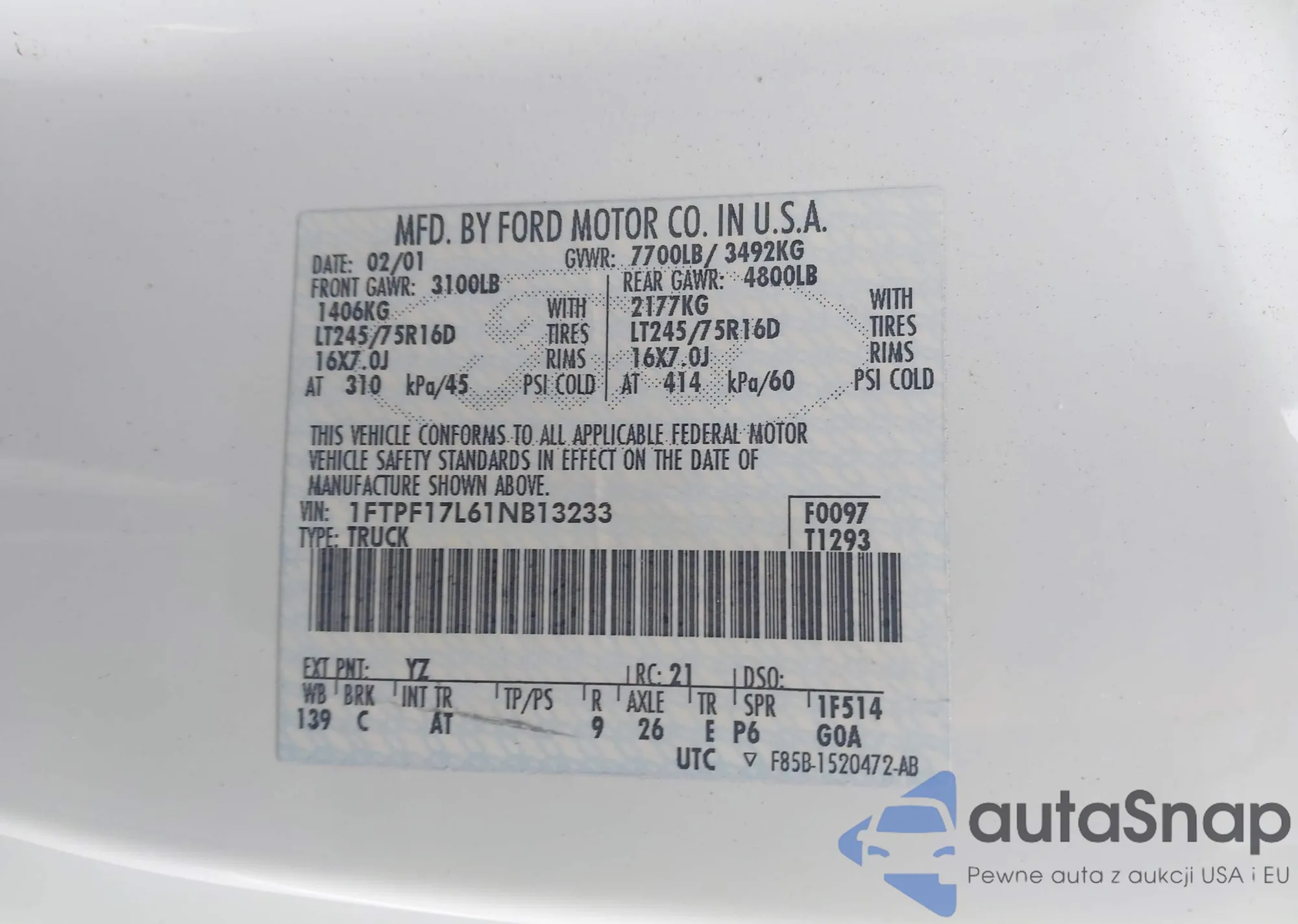 • VIN 1FTPF17L61NB13233