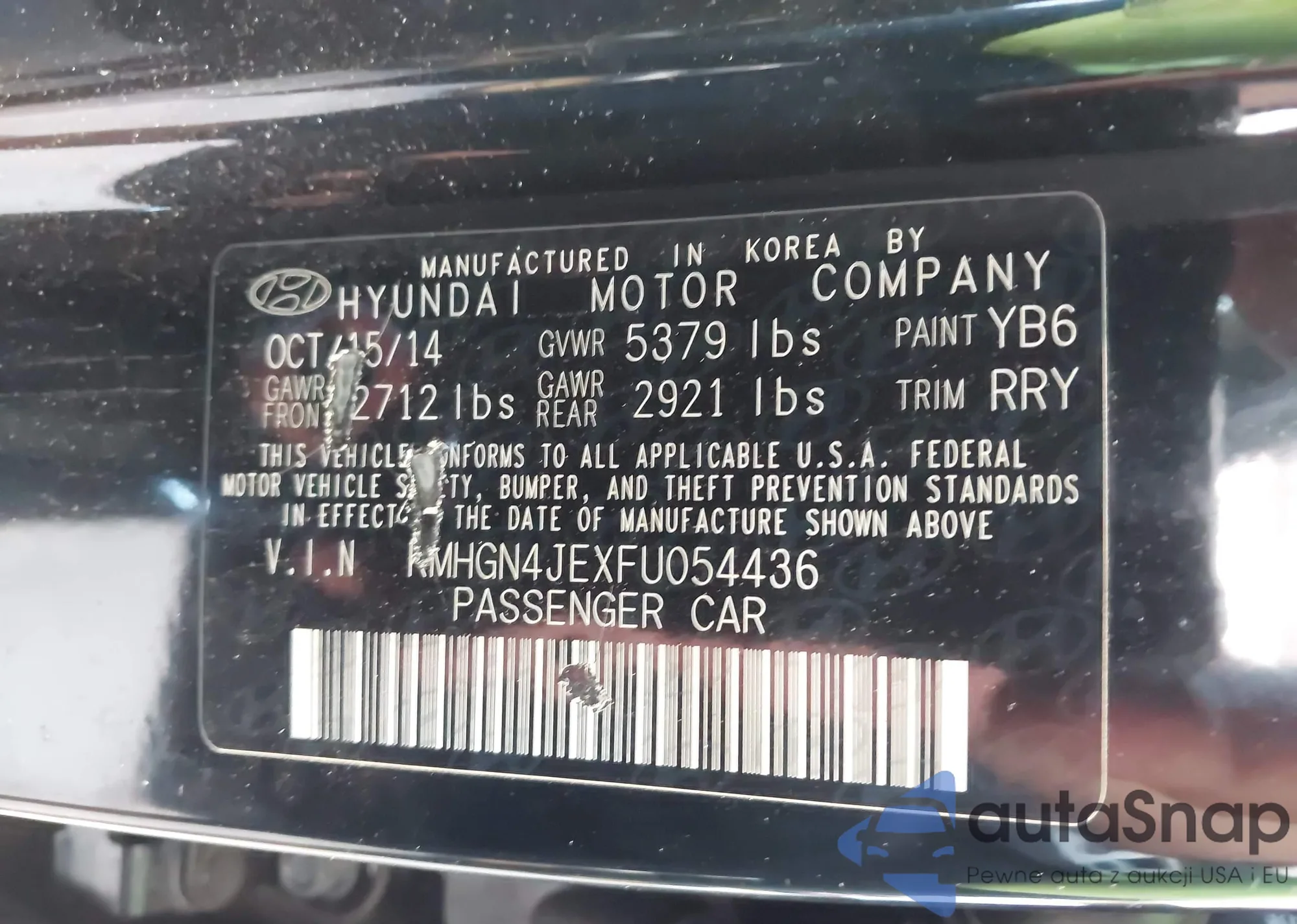 LOT: 42819146 VIN: KMHGN4JEXFU054436