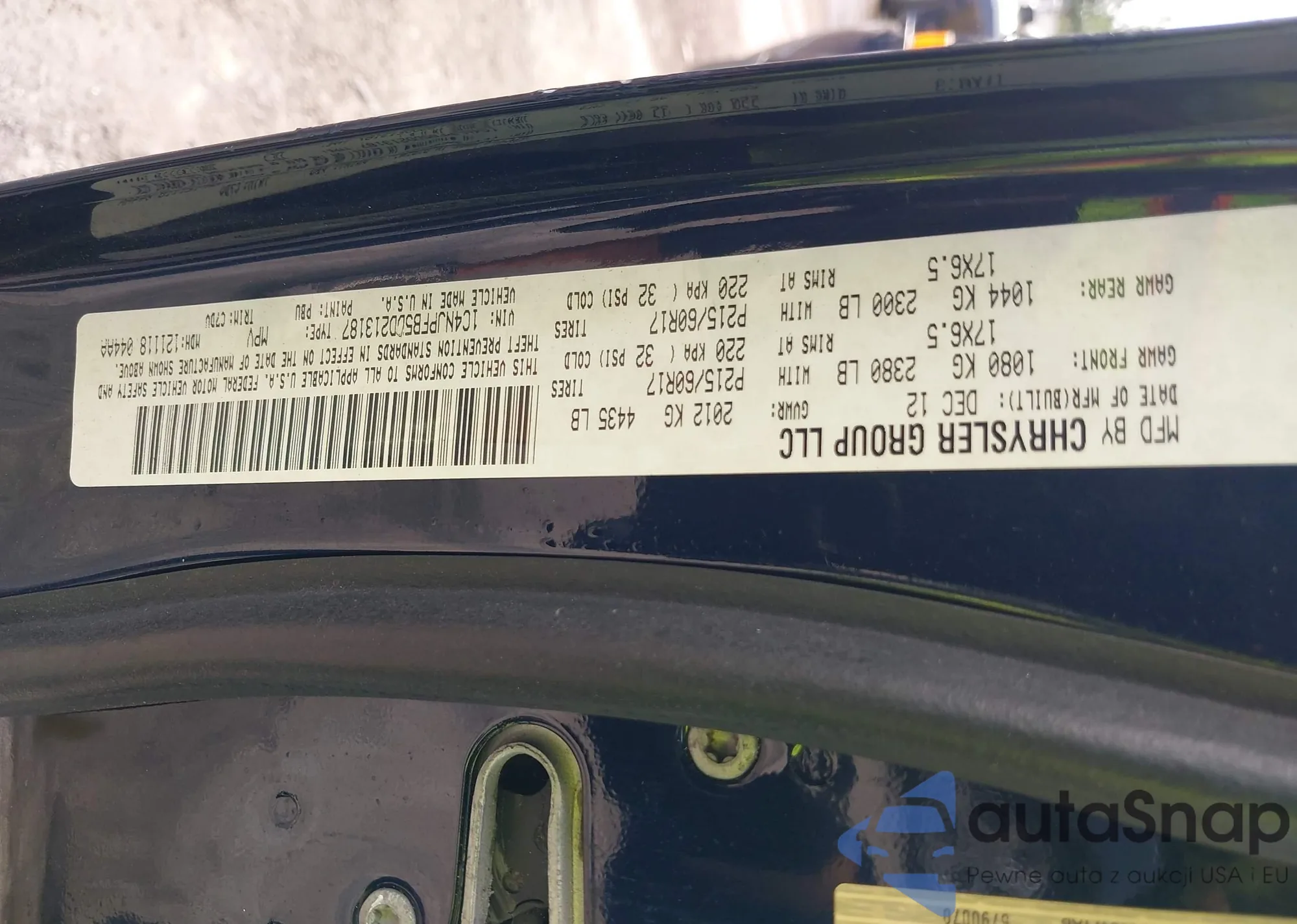 • VIN 1C4NJPFB5DD213187