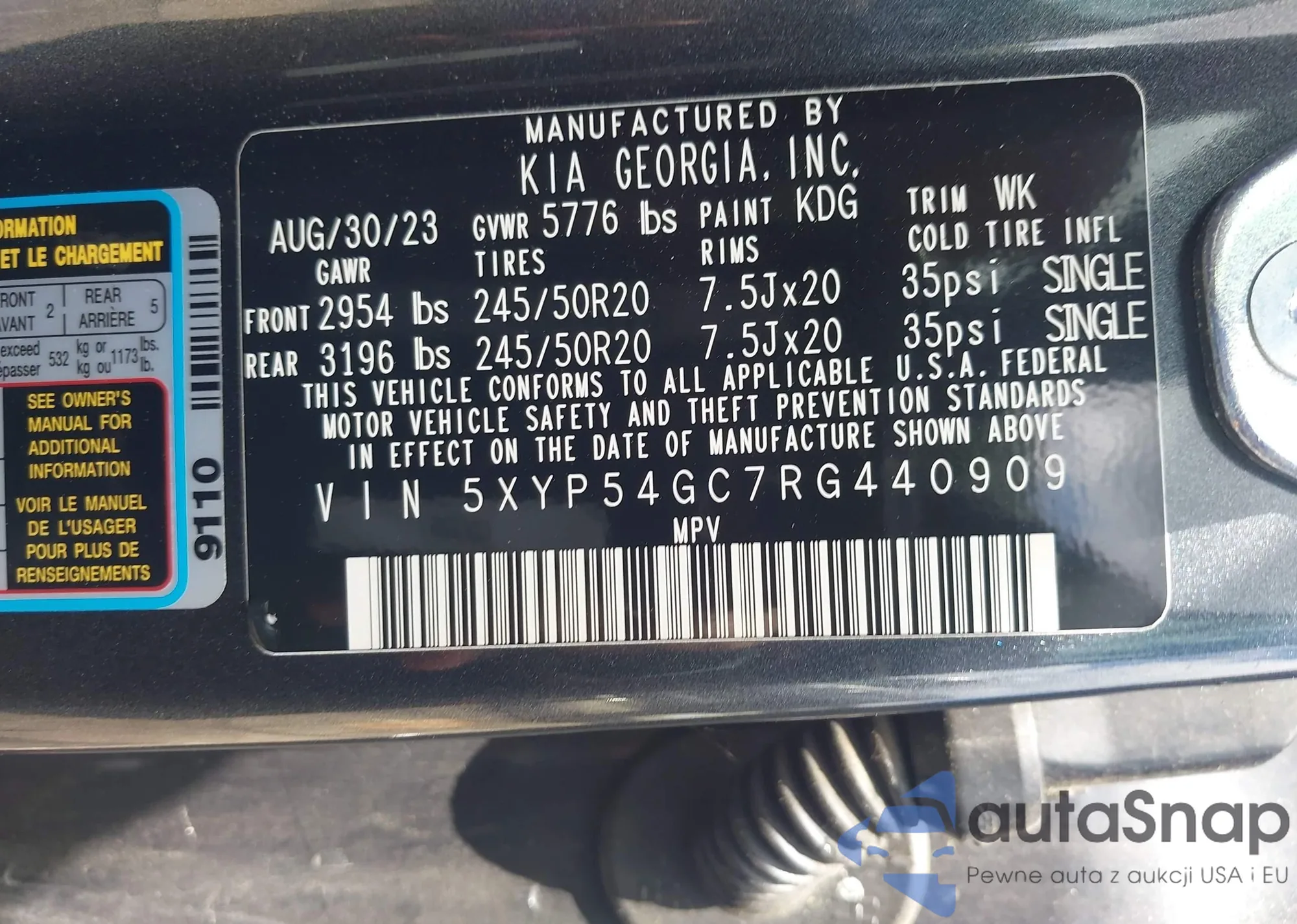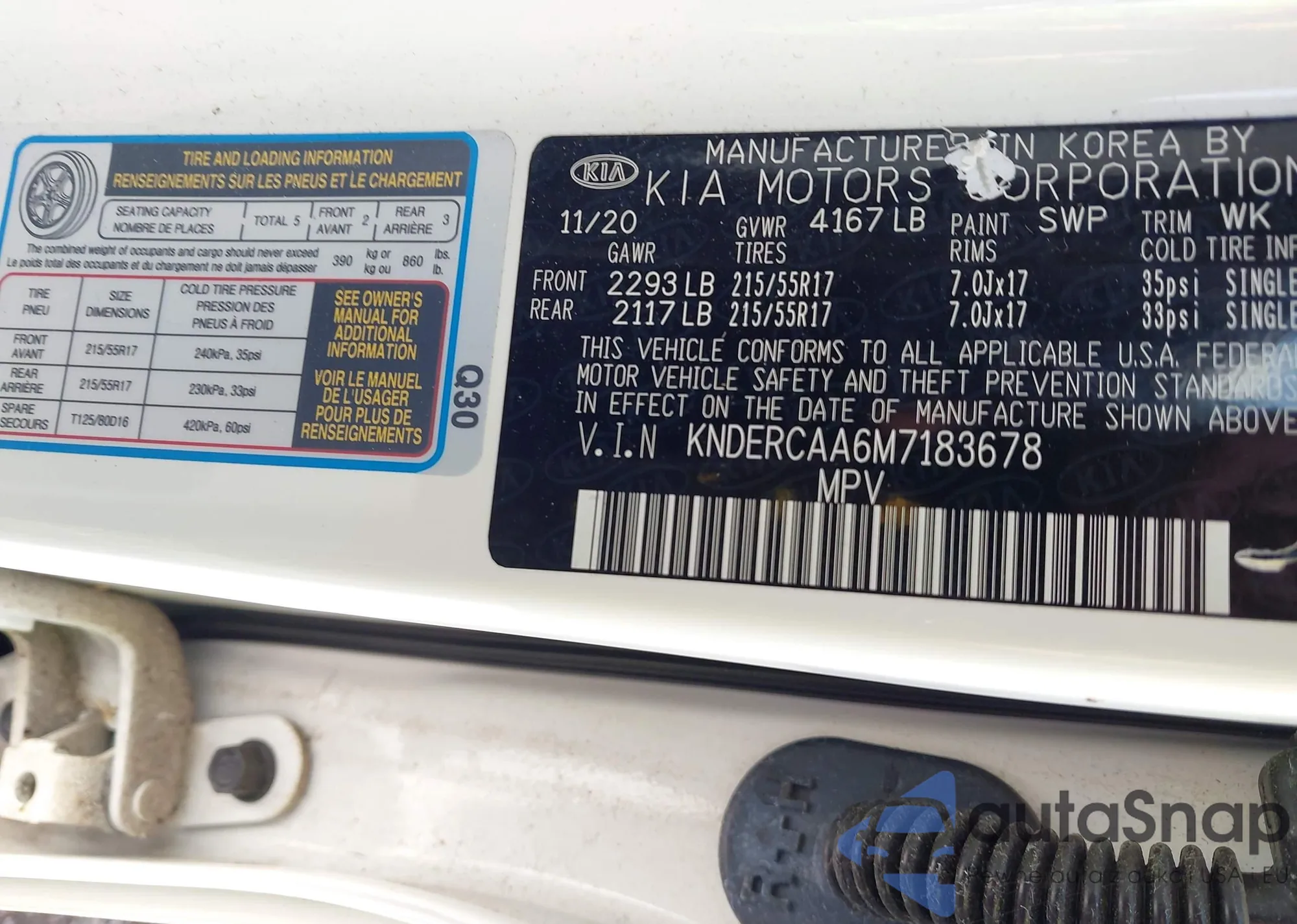 LOT: 42344568 VIN: KNDERCAA6M7183678
