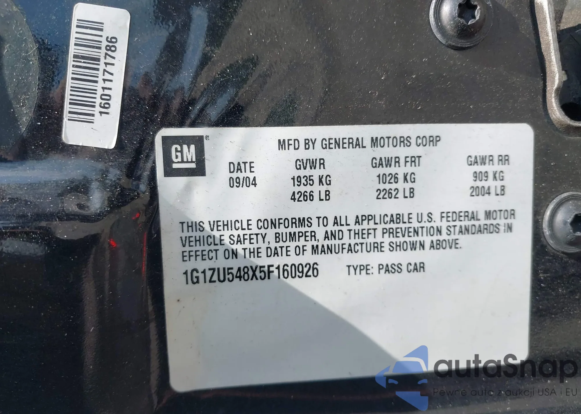 • VIN 1G1ZU548X5F160926