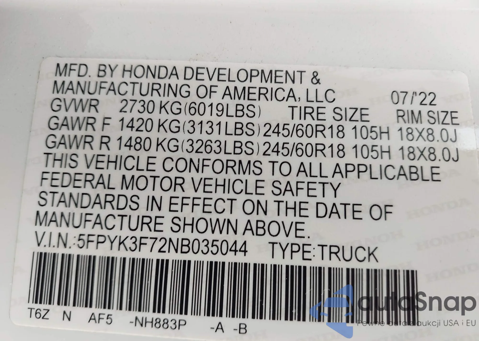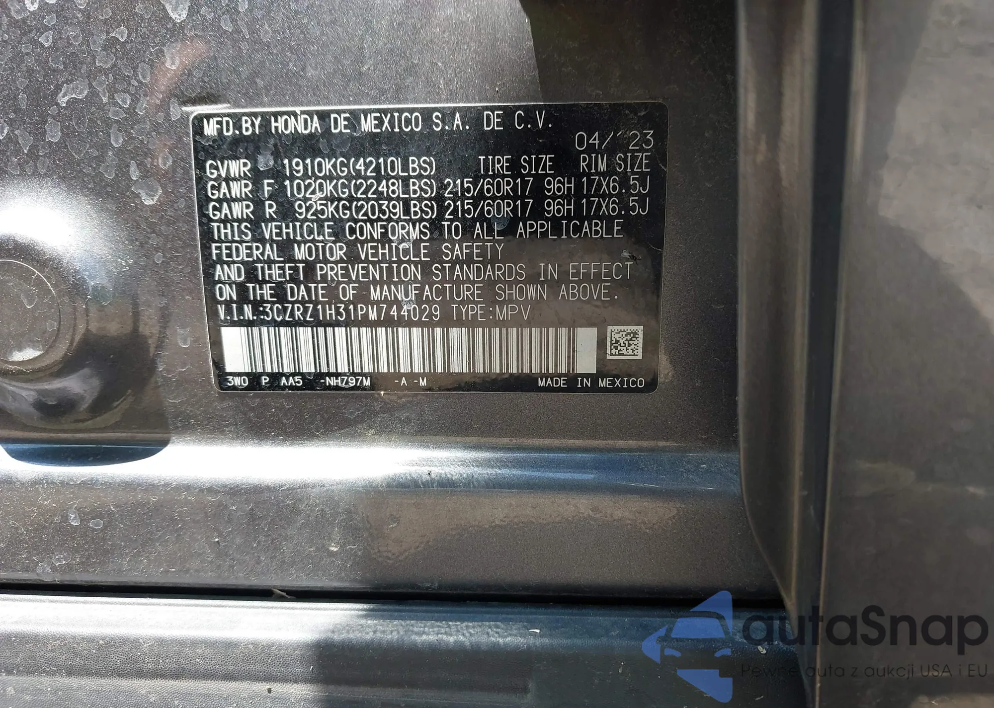 • VIN 1HGCV2F30NA010431
