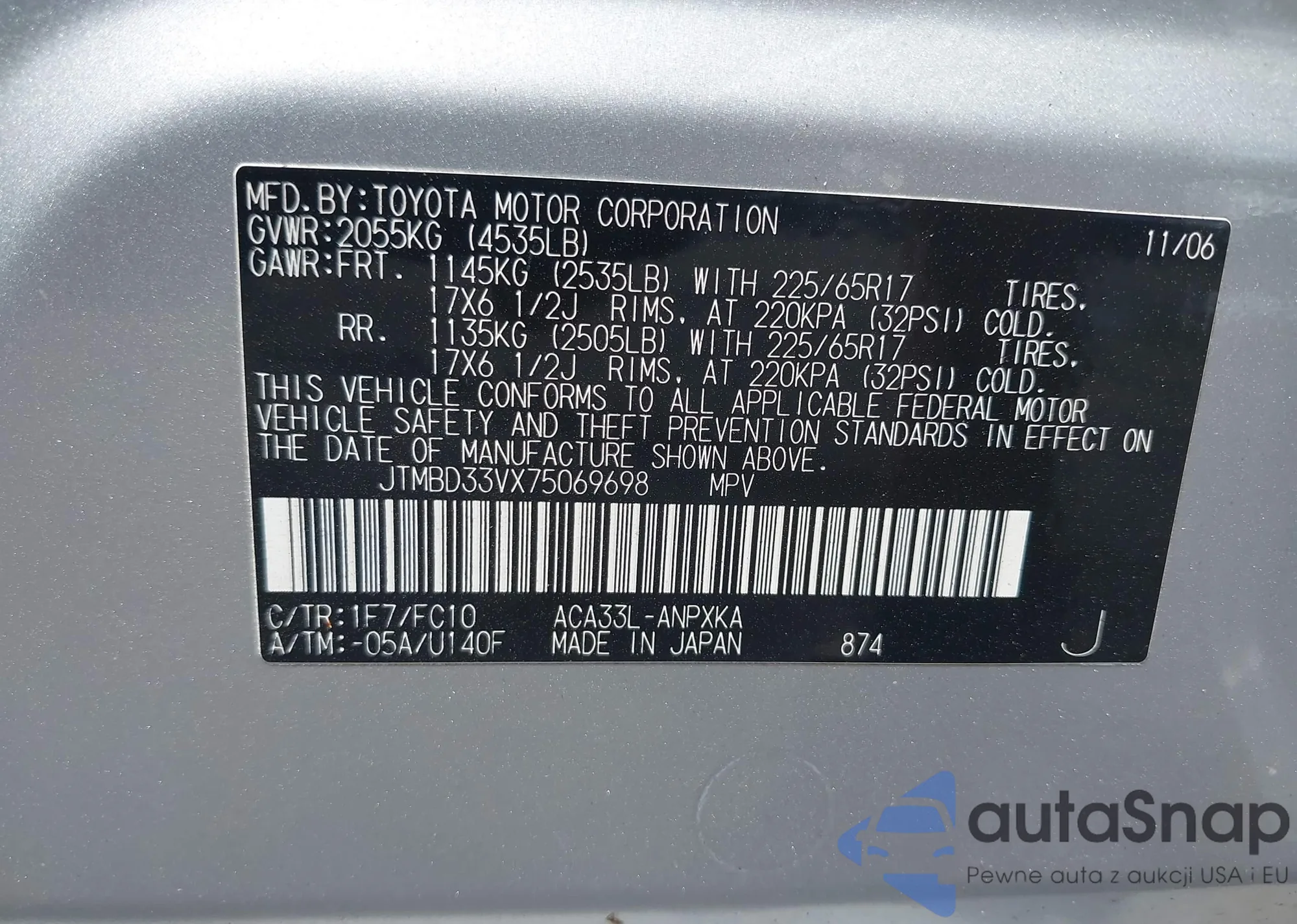 • VIN JTMBD33VX75069698