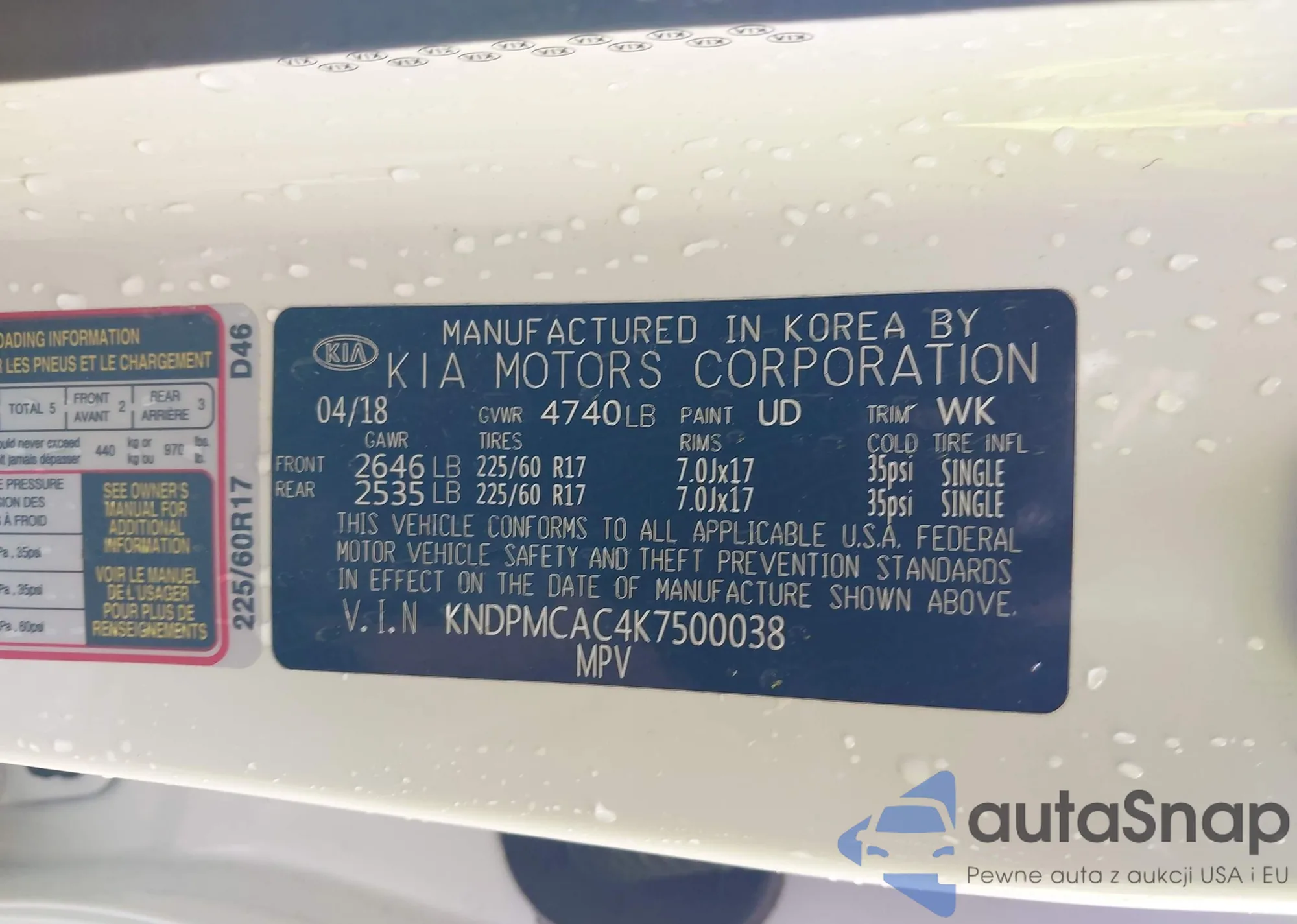 LOT: 42673922 VIN: 1HGCV2F51KA015683