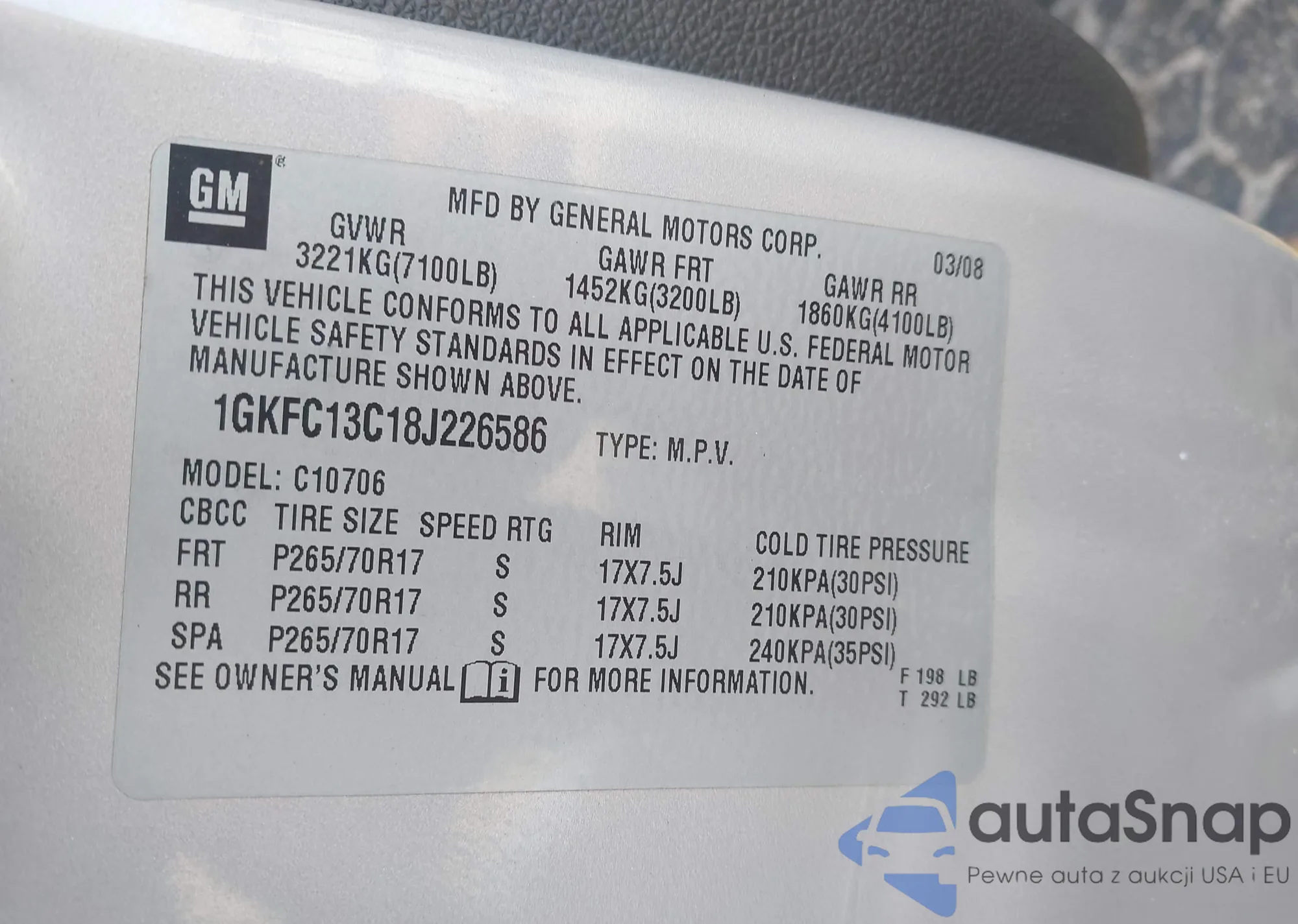 LOT: 42446142 VIN: 1GKFC13C18J226586