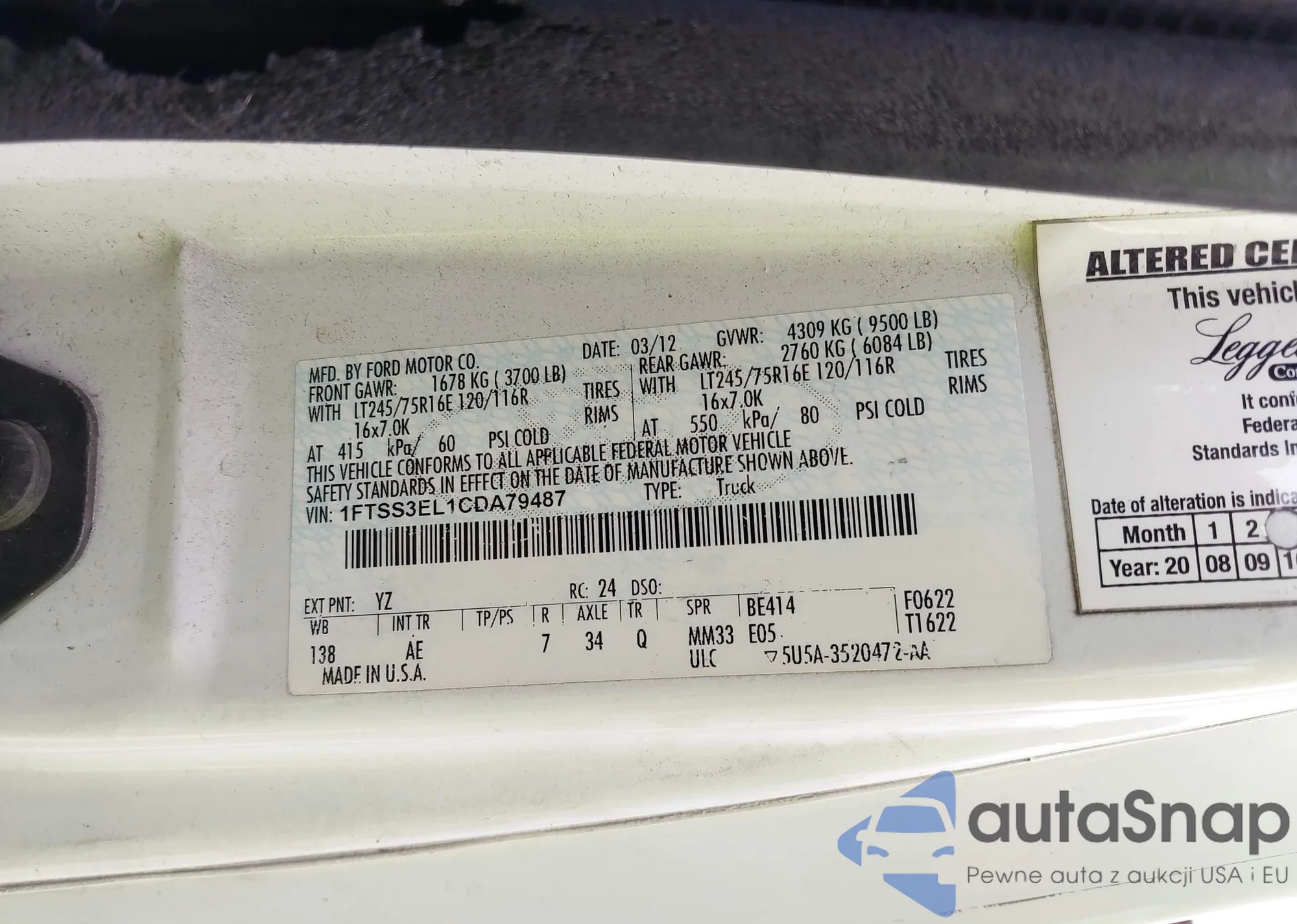 • VIN 1FTSS3EL1CDA79487