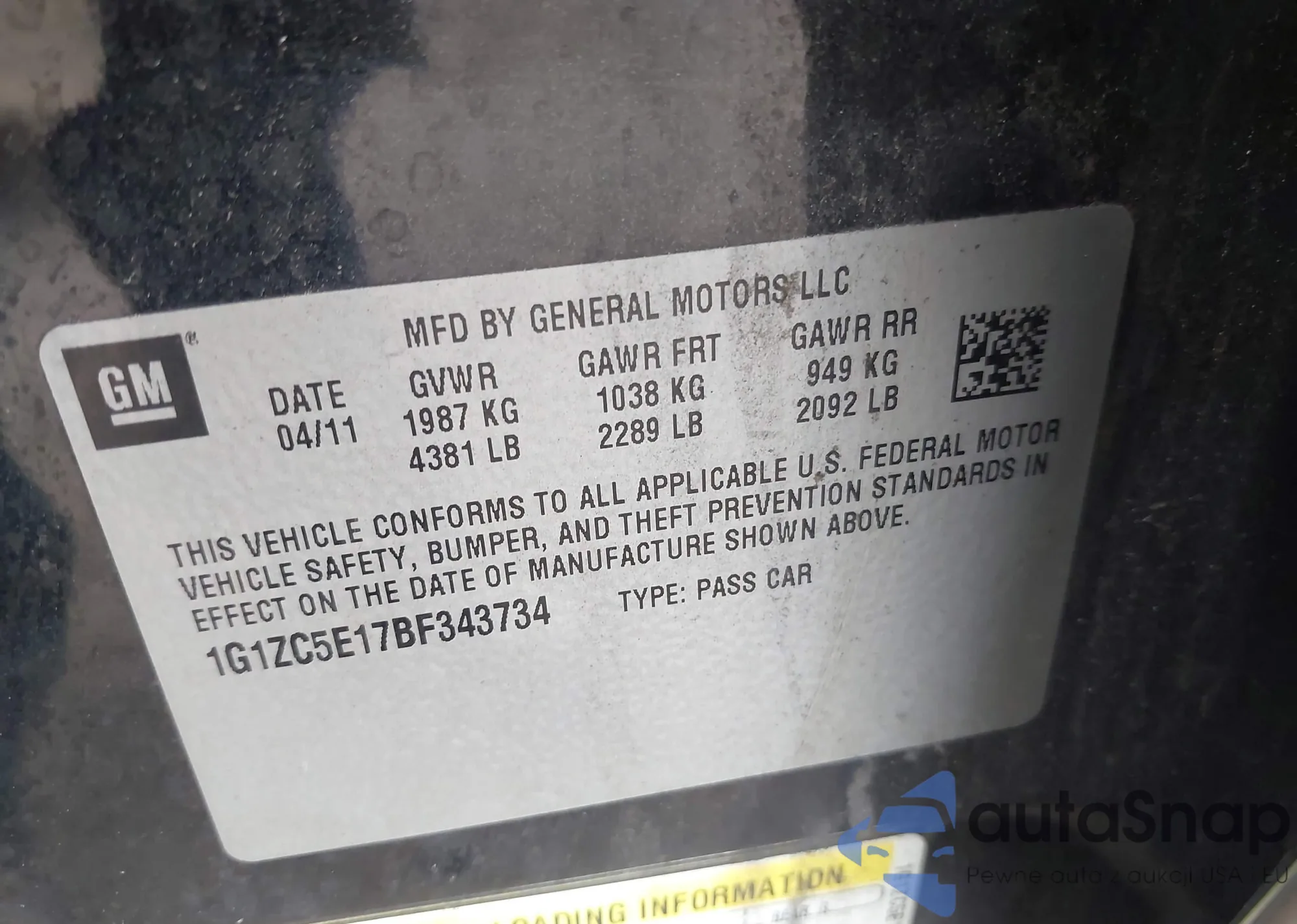 • VIN 1G1ZC5E17BF343734