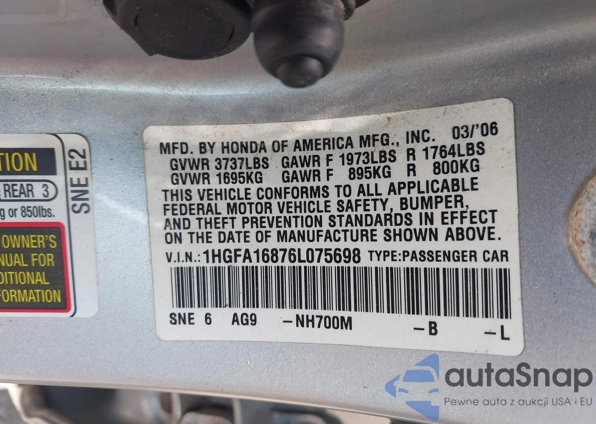 • VIN 1HGCP2F87AA037948